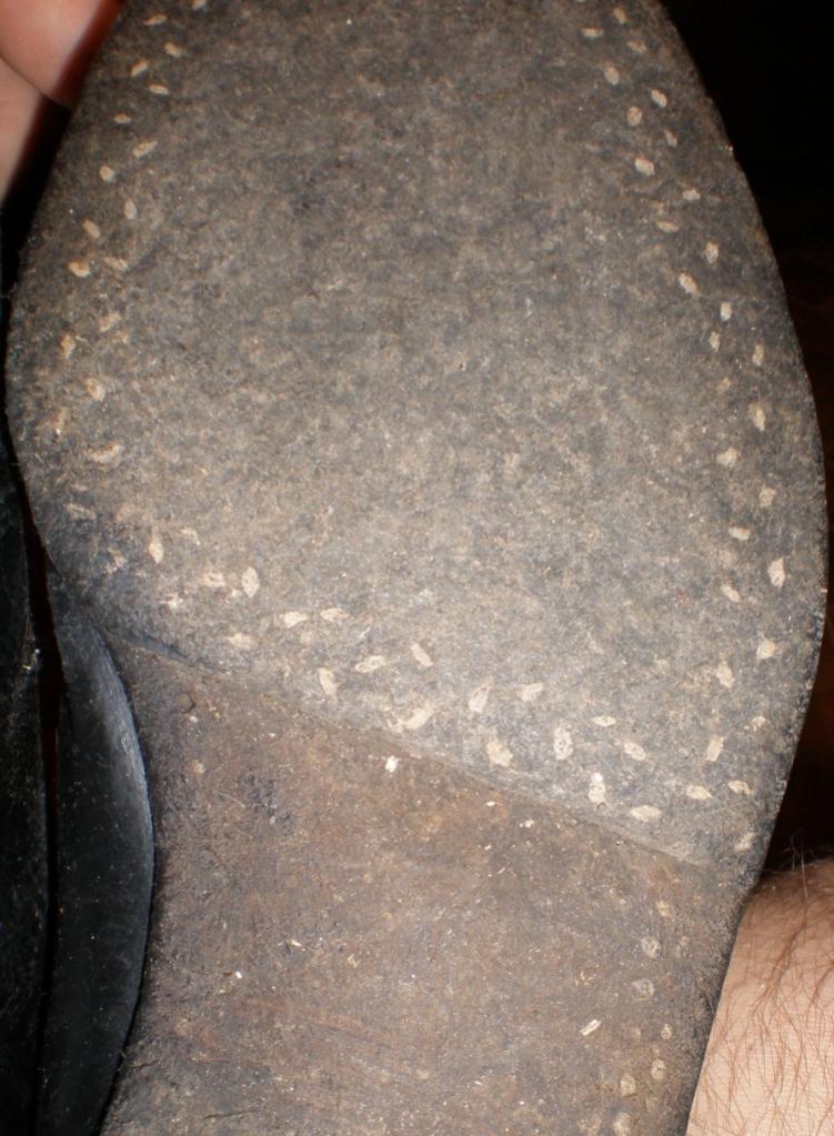 От каблука осталось только 3 слоя кожи. Виден фронтовой ремонт.
