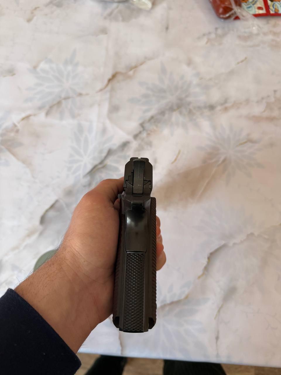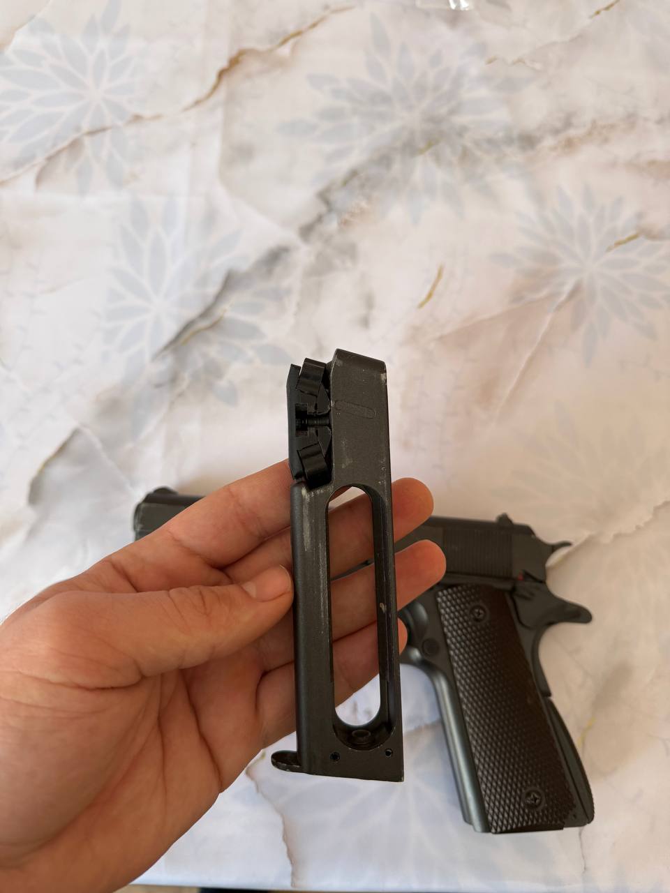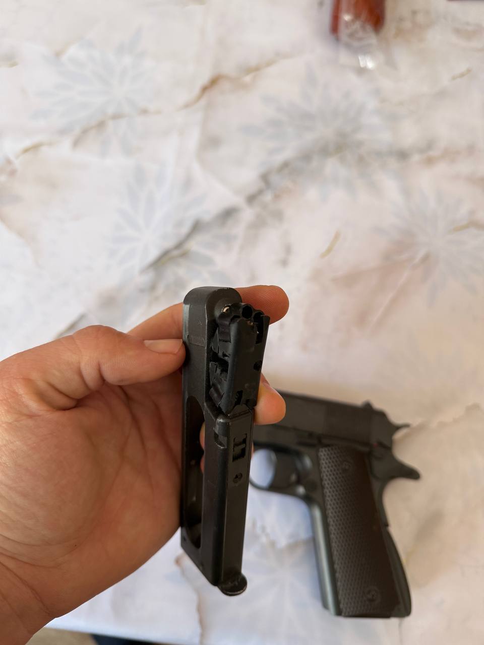Пневматичний пістолет SAS M1911 Pellet 4.5 Модель SAS M1911 Pellet точно так само як і модель SAS M1911 копіює бойовий аналог Colt M1911, але в якості боєприпасів в SAS M1911 Pellet використовуються пневматичні кулі 4,5 мм, в пістолеті встановлений нарізний ствол і роторний магазин з двома барабанами загальною ємністю 12 зарядів. Завдяки зміненій конструкції магазину, одного 12-ти грамового CO2 балона буде достатньо для здійснення 70-80 пострілів без істотної втрати потужності. Пістолет у відмінному стані! Працює добре! У комплекті: - пістолет - кулі Ціна - 3499гр Надішлю поштою.
