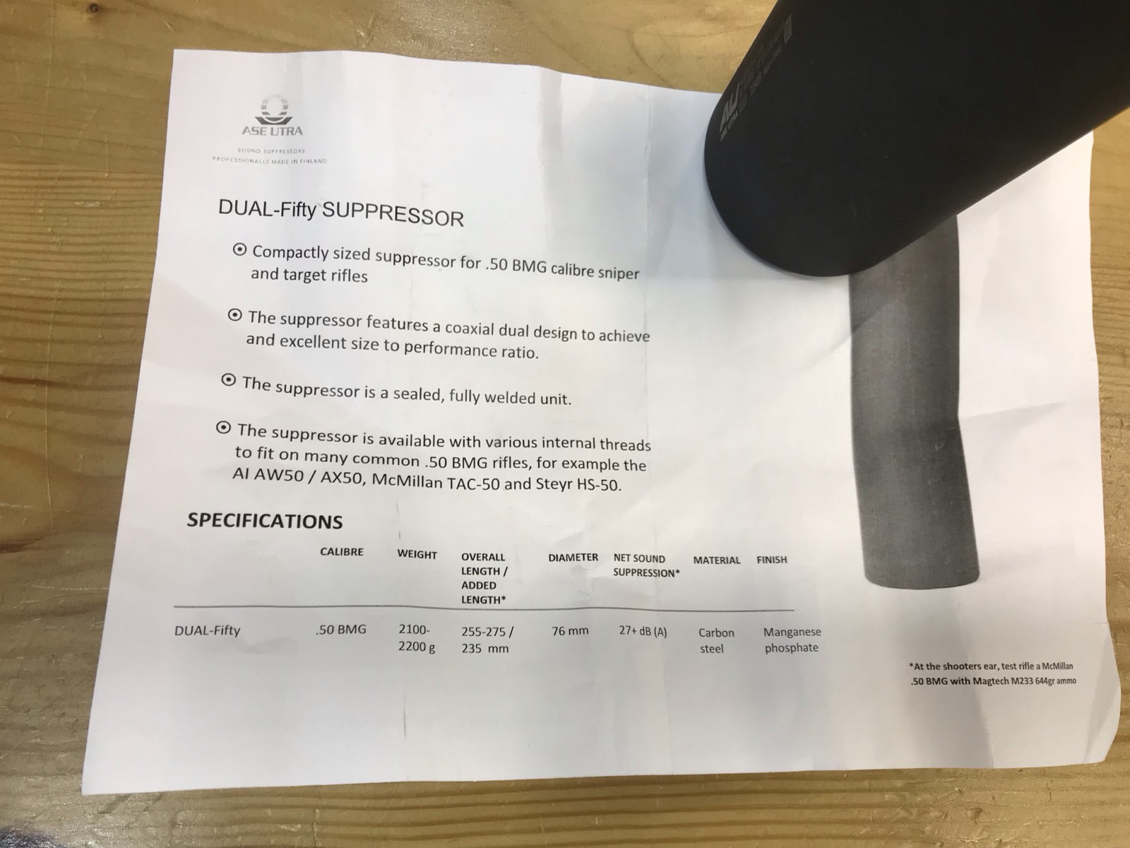 Саундмодератор с настрелом 5 патронов ,Ase Utra Dual-Fifty под к.50 BMG,резьба 7/8"-14.Цена 24000 грн