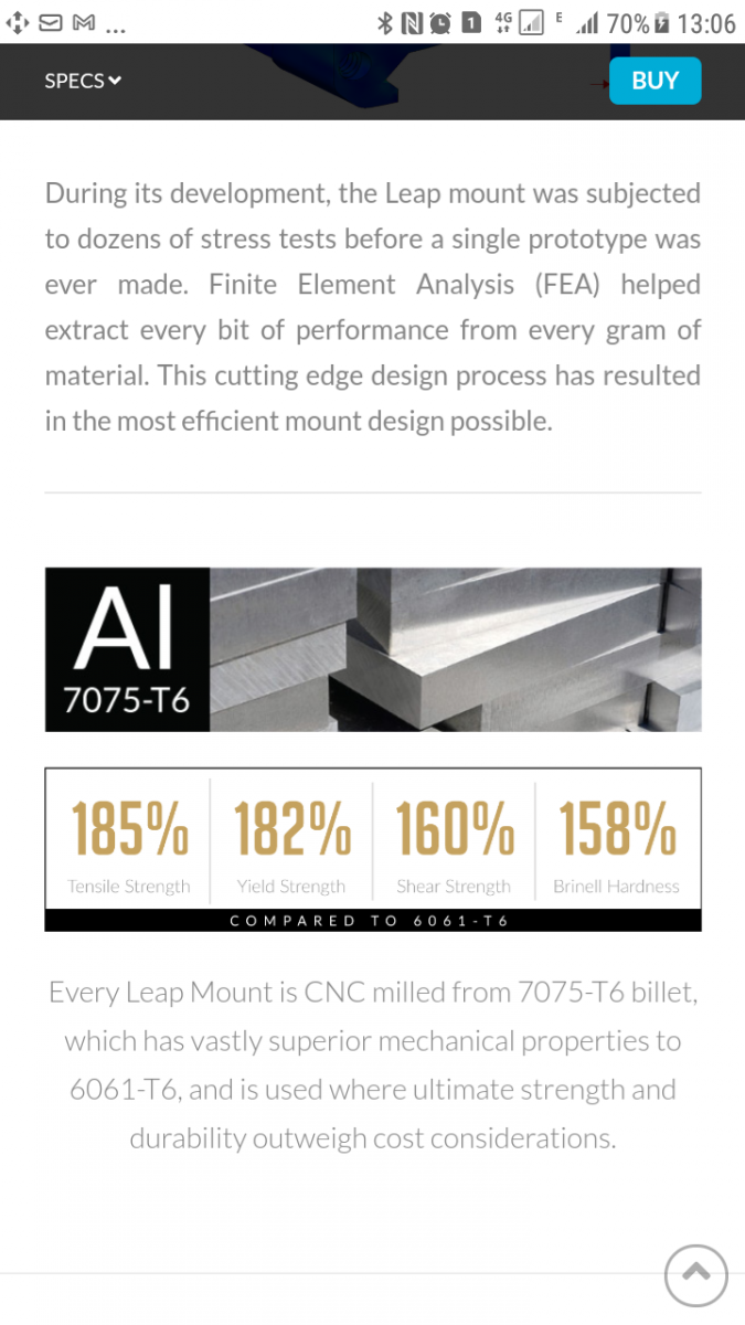 Крепление выполнено из сверх прочного и легкого алюминия марки 7075-Т6, в отличии от конкурентов, использующих материал марки 6061-Т6