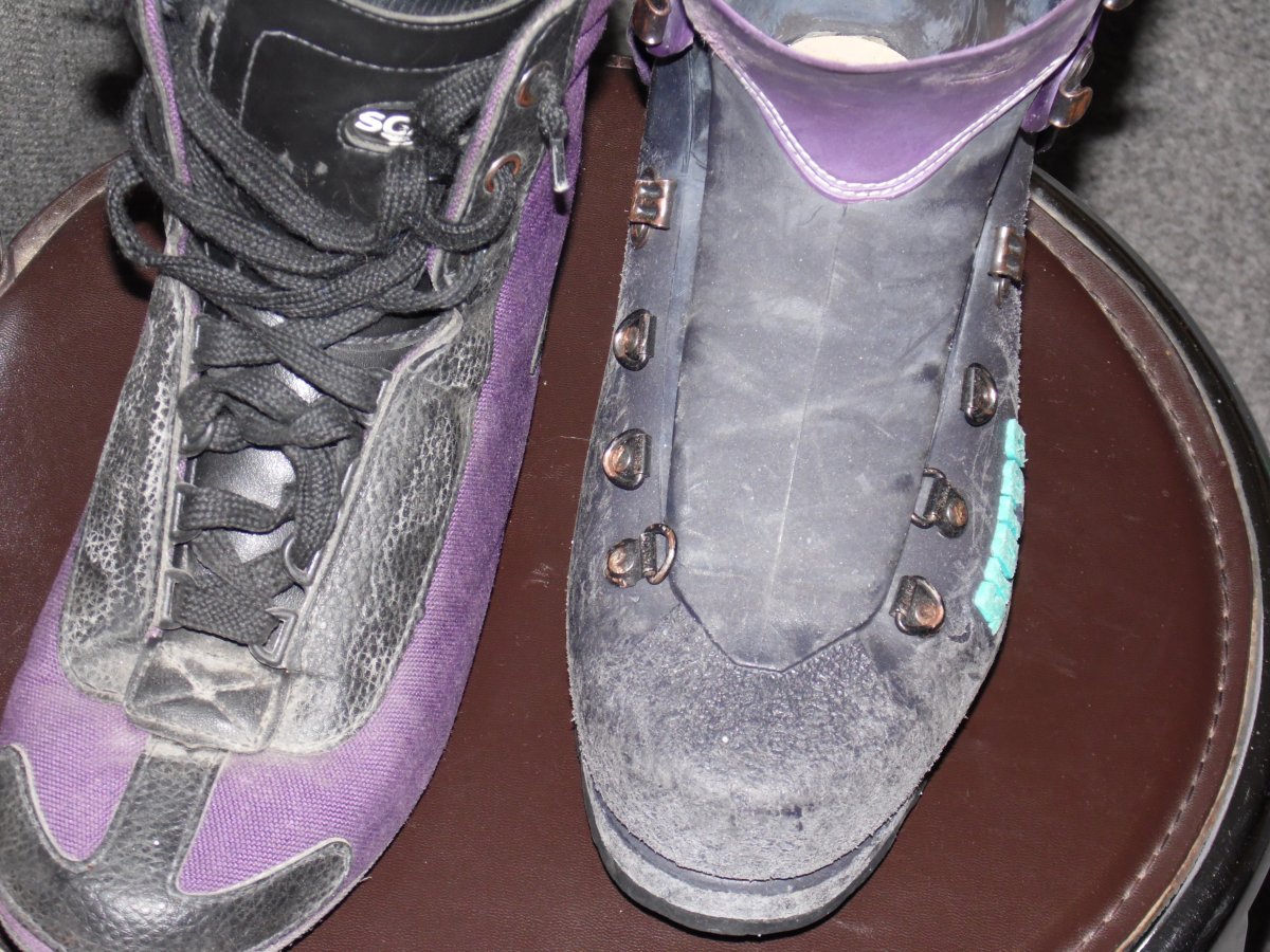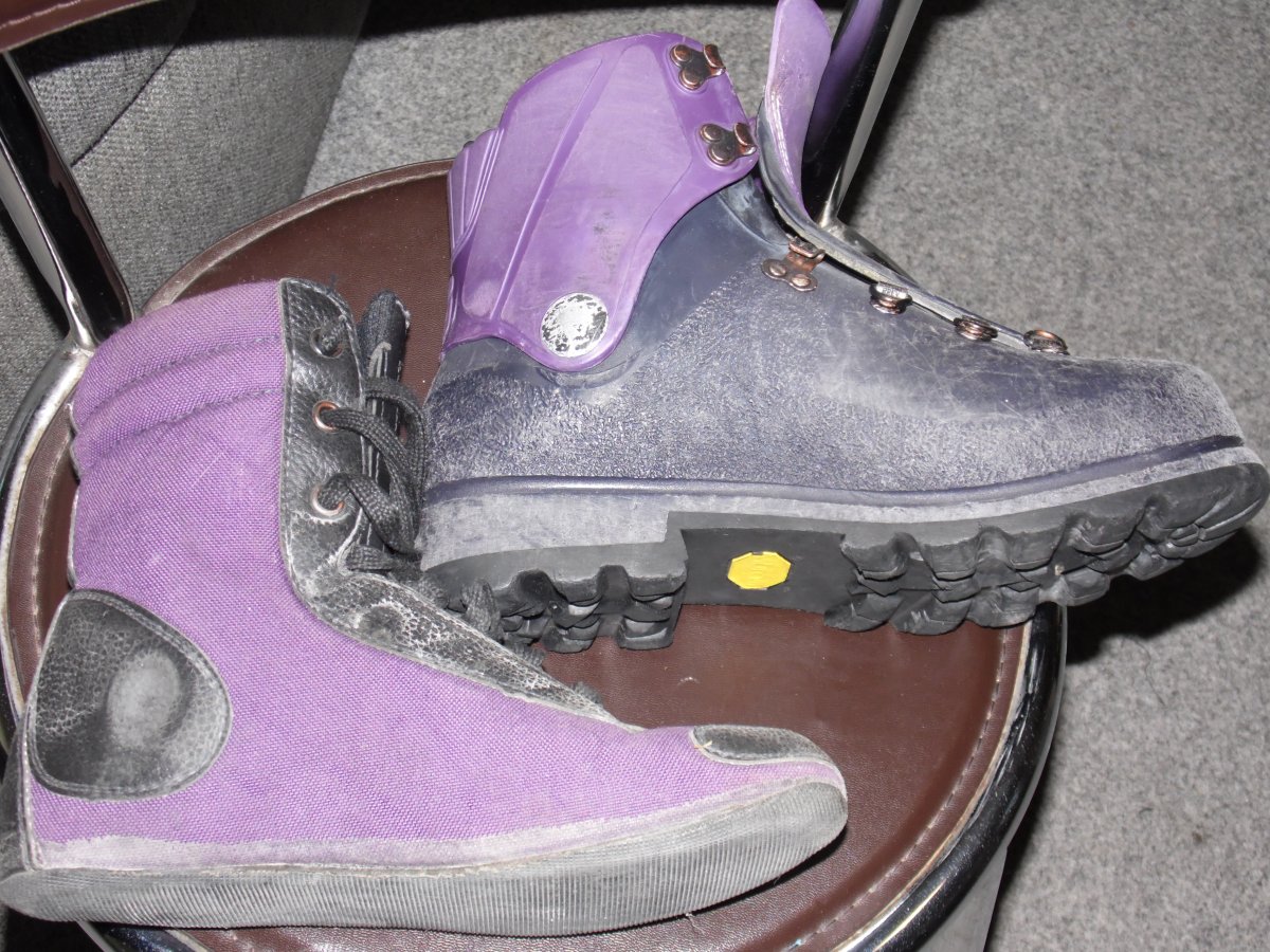 Ботинки чистый надежный итальянский горняк. Как и положено этой модели - два в одном. Внешний ботинок гнущийся материал типа пластик . Внутренний ботинок непромокайка с утеплителем. Шнуровка на каждом боте отдельно. Вибрам. Дефектов нет. Внутренний ботинок 250 мм на 80 мм(может по пару мм в плюс) Прошу 280 гривен. Торг. Вышлю.