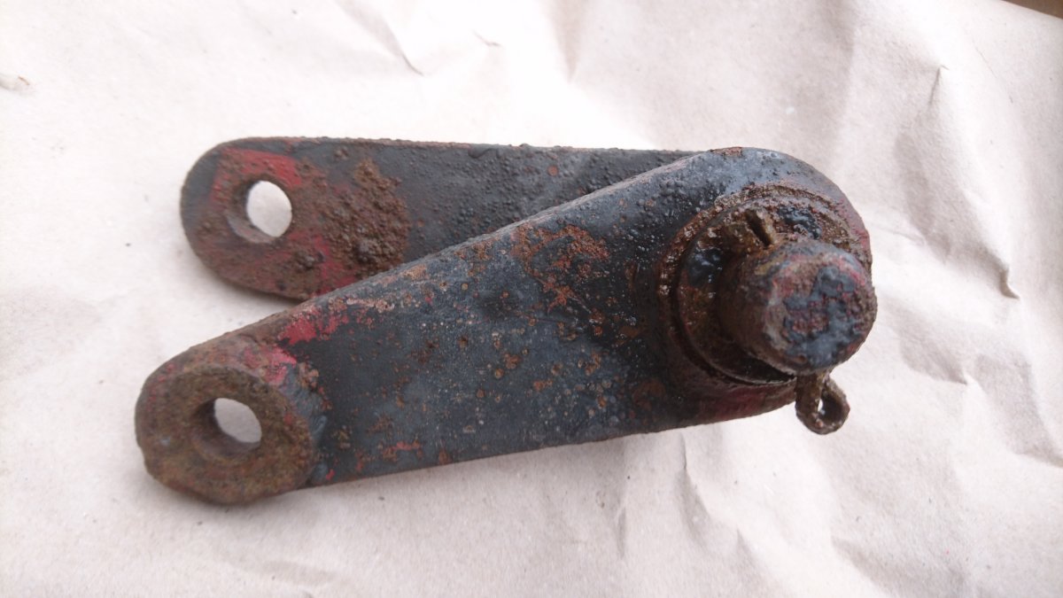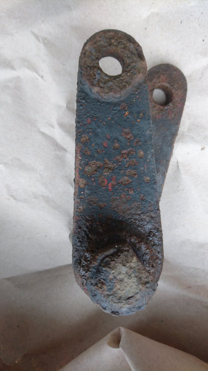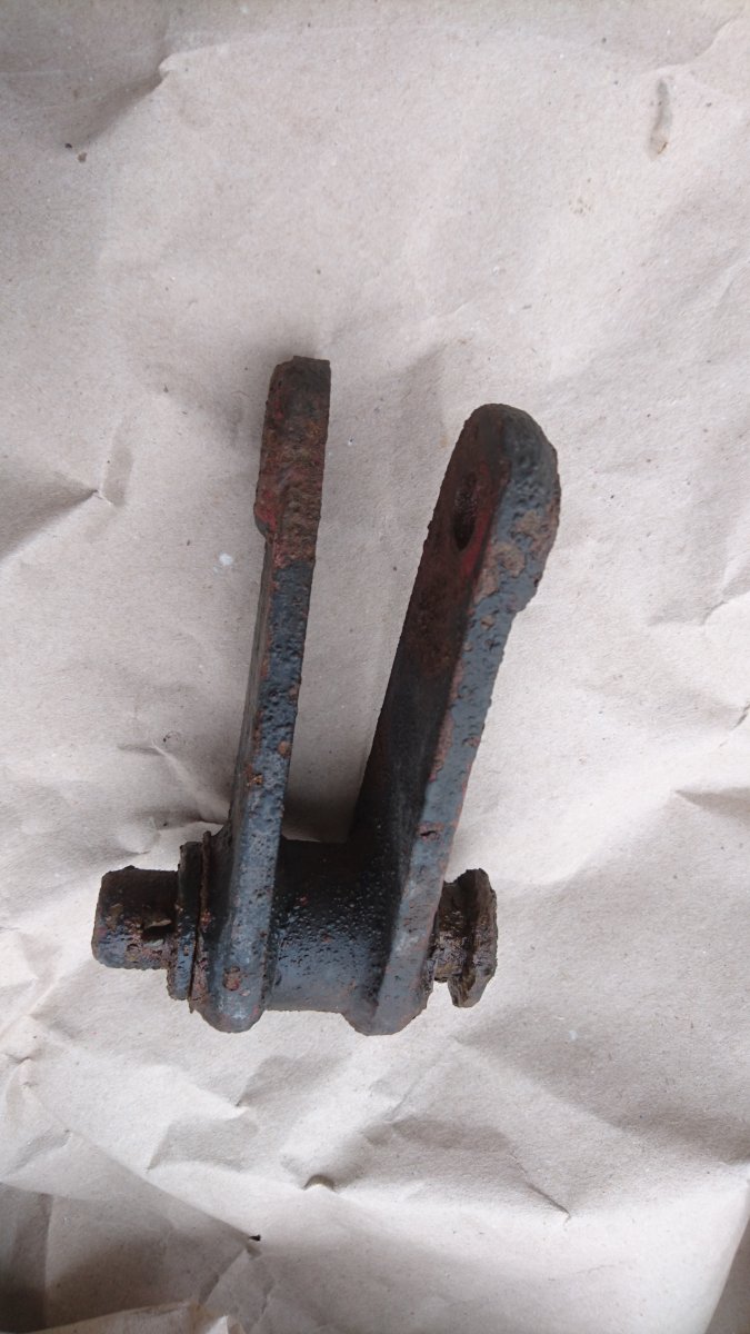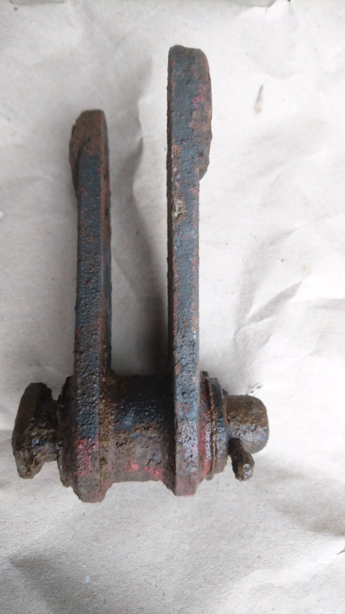 Здравствуйте.Подскажите от чего деталь. И как она правильно называется,мне пришло на ум только сцепка или серьга. Цвет детали вроде бы немецкий и грунт красный,да собственно и найден на немецких позициях.