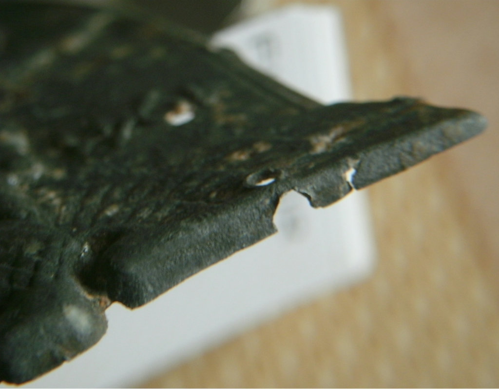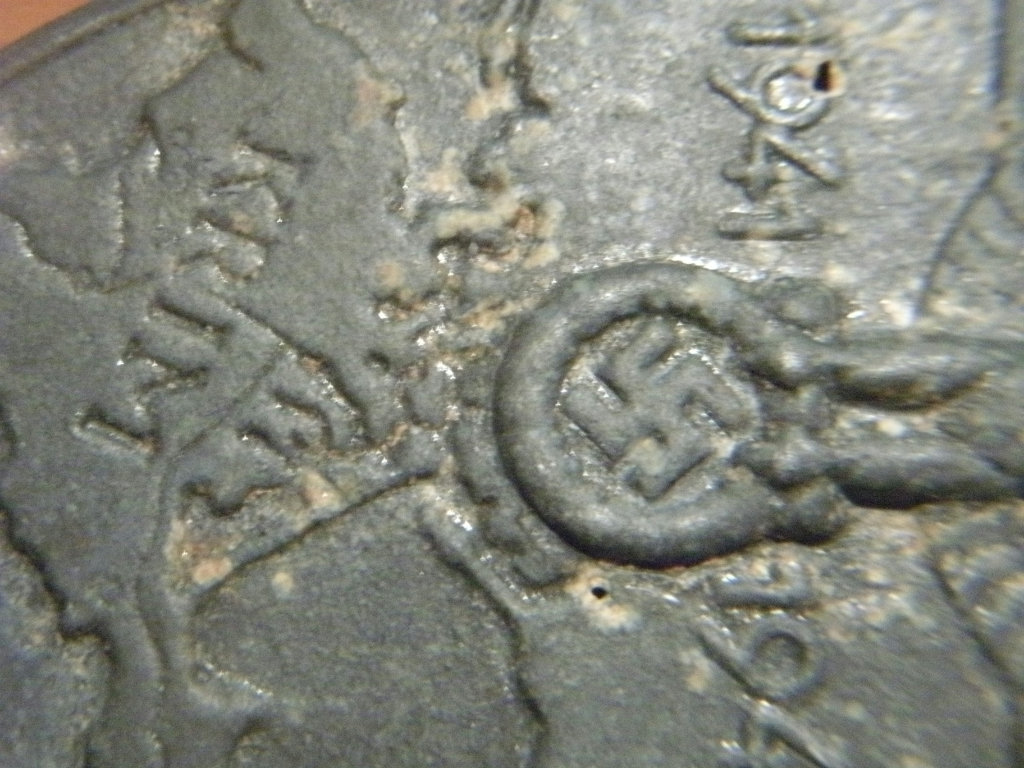 Доброго времени суток.Прошу прощения,что не смог учасвовоть в теме(отдыхал за городом)Что я могу сказать по вышеизложенному!Этот щит нужно держать в руках,чтобы его определить"фуфло"или нет.Я держу этот щит в руках у меня никаких сомнений он не вызывает.По поводу дубовых листьев вокруг креста,я бы сказал,что это может быть разновидность штампа и время.Окислы(то что Вы видите на фото) не песок они реально окаменелыеПредоставляю фото гурта щита