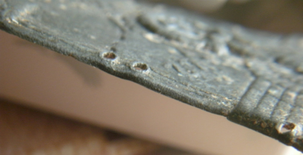 Хорошо.Тогда как Вы объясните такое словосочетание как,воздействие среды?Всем попадались знаки на которых одна половина "минт"а другая "труха" и такой-же знак покрытый пленкой окиси(и что бывает когда эту пленку снимаешь)Такое-же происходит и с стальными шлемами,алюминиевыми обручами.Просто на цынке,это наиболее выражено.Так-вот Вы сейчас сравниваете,целые участки с полностью окисленным щитом,что на мой взгляд не являеться аргументом.Всем весело,а у человека трагедия...Тут нужен более взвешенный подход.