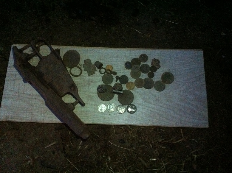 Итог за выезд, выскочил обрезаник царевый бодряковый, птица латунная с буквами ВД в нижней части и всего по мелочи.