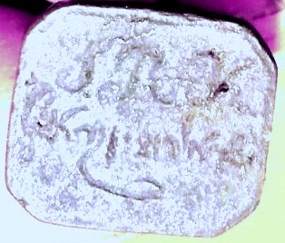 Добридень! Блін, за Вами, шановний TarASha не встигаєш... Всі Ваші фото перегорнуті і, якщо Ваш предмет це печатка, то читатися нормально має дзеркальне відображення. Ось трохи "погрався" з кольором і тоном і відобразив дзеркально напис: Принаймні сподіваюся, що так буде правильніше. За текстом написи бачиться: "S.R.K." (або ініціали або абревіатура підприємства) та слово "Скупка". Причому в середині слова ще 2 літери (або якісь незрозумілі знаки) - "Ску**пка".