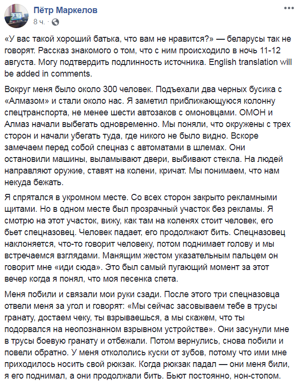 Было, нет? «Засунем в трусы гранату и выдернем чеку»: белорус рассказал о зверствах силовиков и заподозрил, что это были россияне ---- Кстати, проверить-то, можно... если не беларусы, а москали - не должны понимать язык. Пусть скажут, например, "паляниця"... (Правда, это - нужно в плен взять, чтоб спрашивать... а, в этом случае - "расколоть" можно, и, более простыми методами).