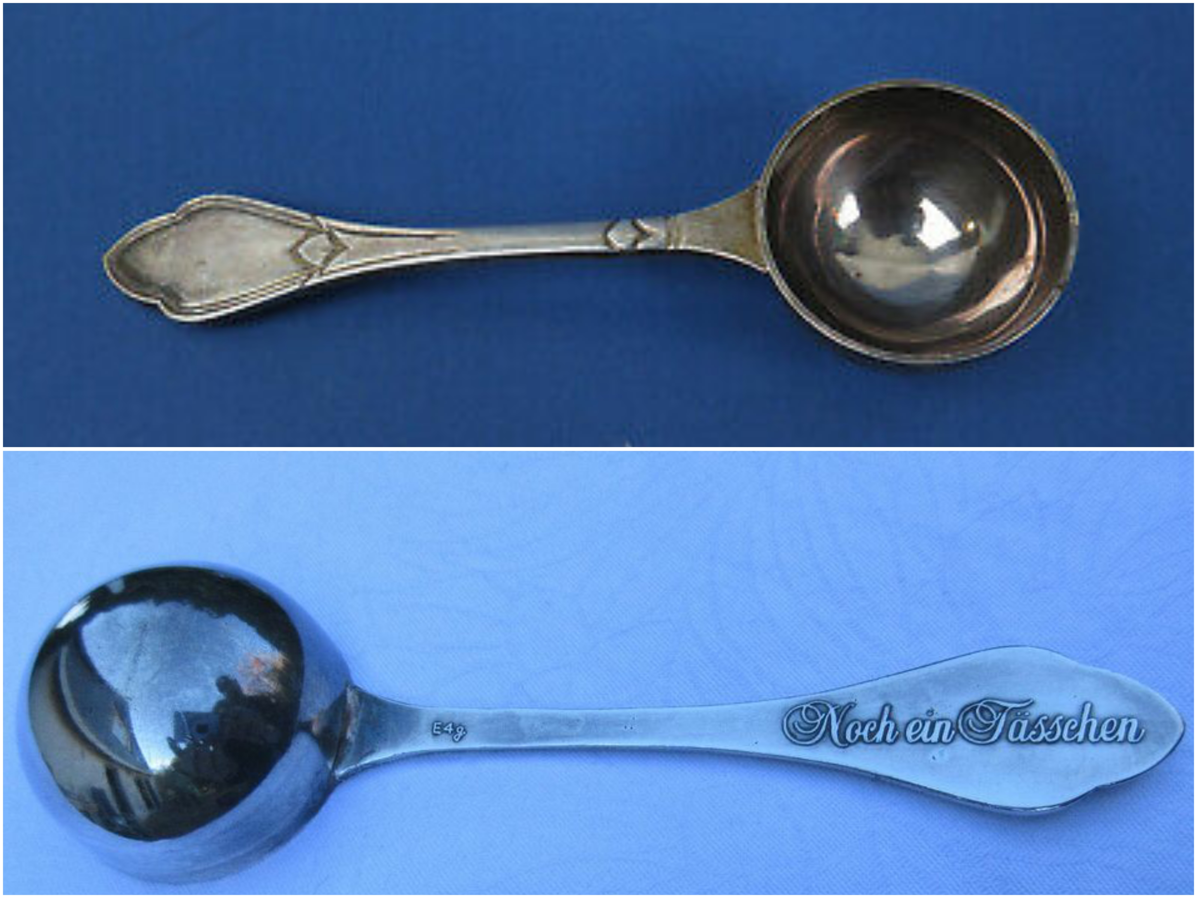За таким фото зовсім не зрозумілі розміри та форма цього черпака. Може це маленький "черпачок"? Тоді припустимо мірну ложку для кави..
