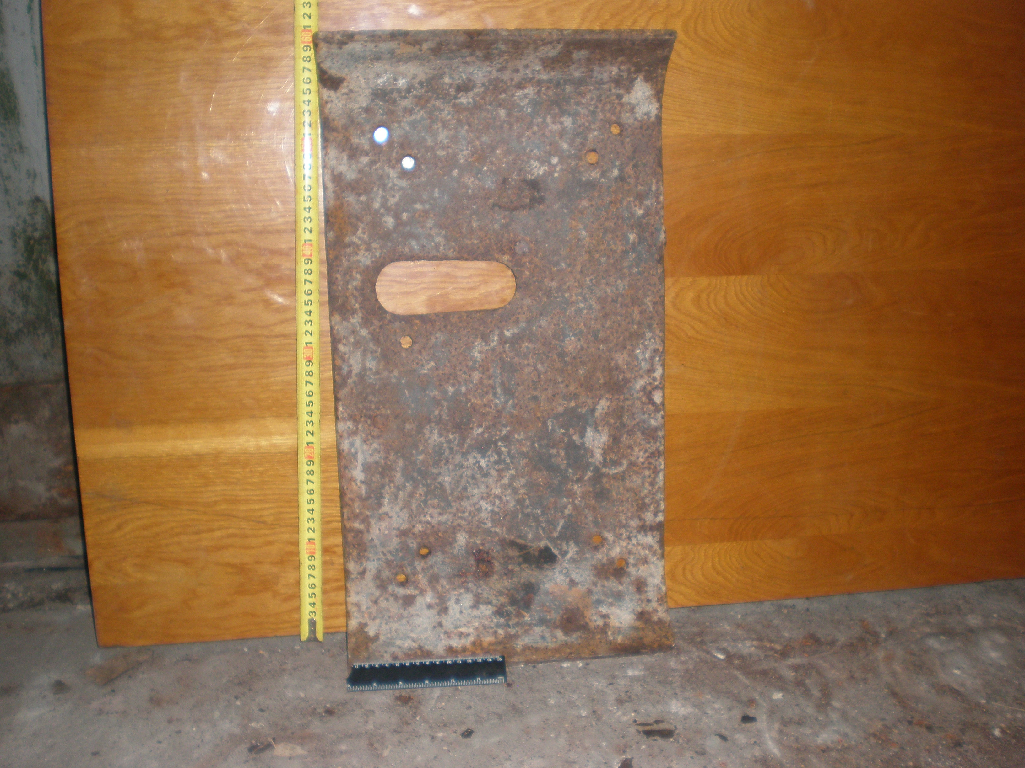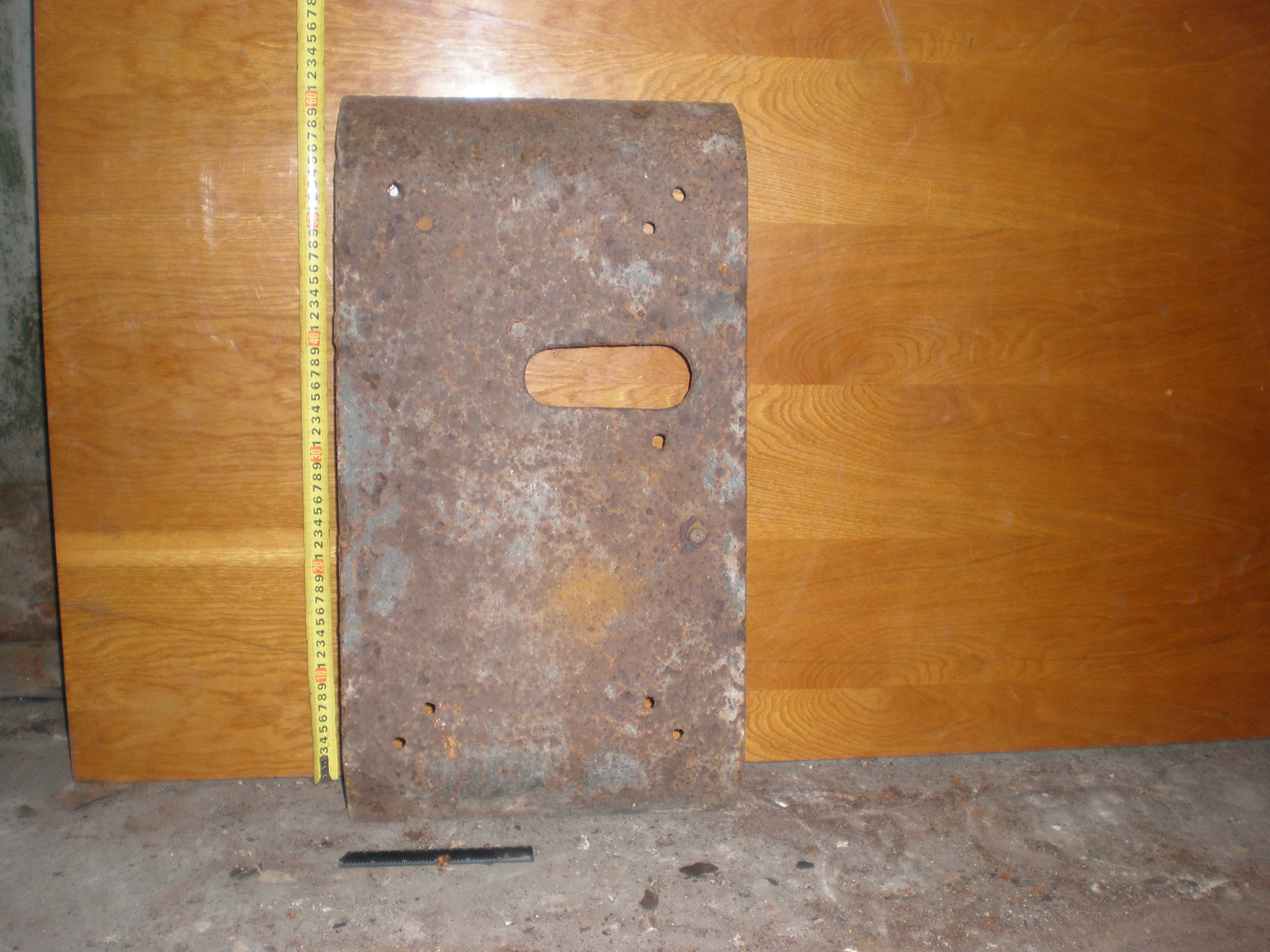 Вітаю. Більше всього, що це бронєзаслонка на амбразуру ДОТа. Подібна у мене є, але моя товща /4см./ і з ручкою.Можливо були якісь іще варіанти по празначенню. Розмір десь такий само. З пов.