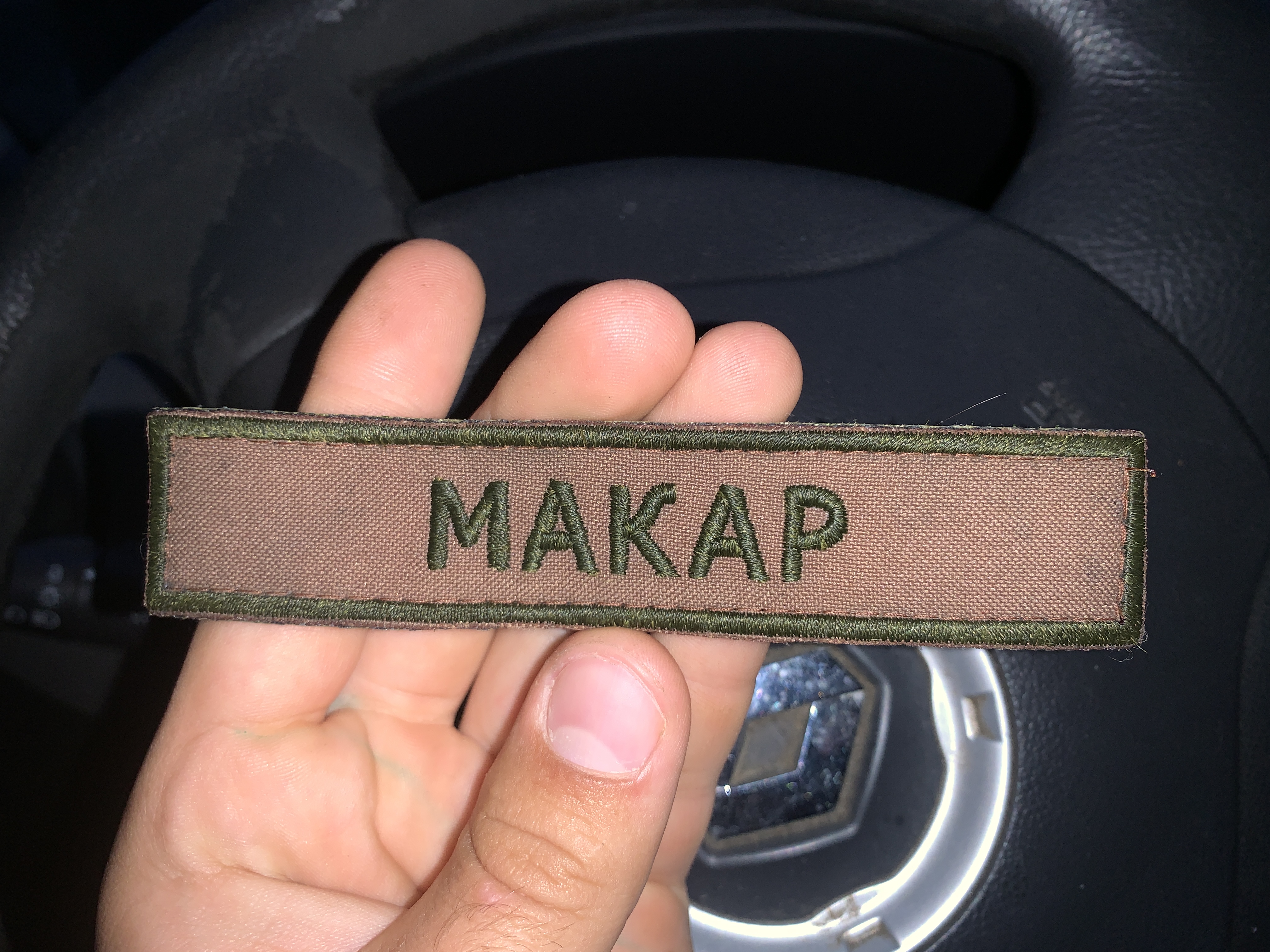 Гадаю, що ніяким МАКАРом приналежність не визначити! Є купа контор, що шиють ці шеврони і використовують будь які підкладки.