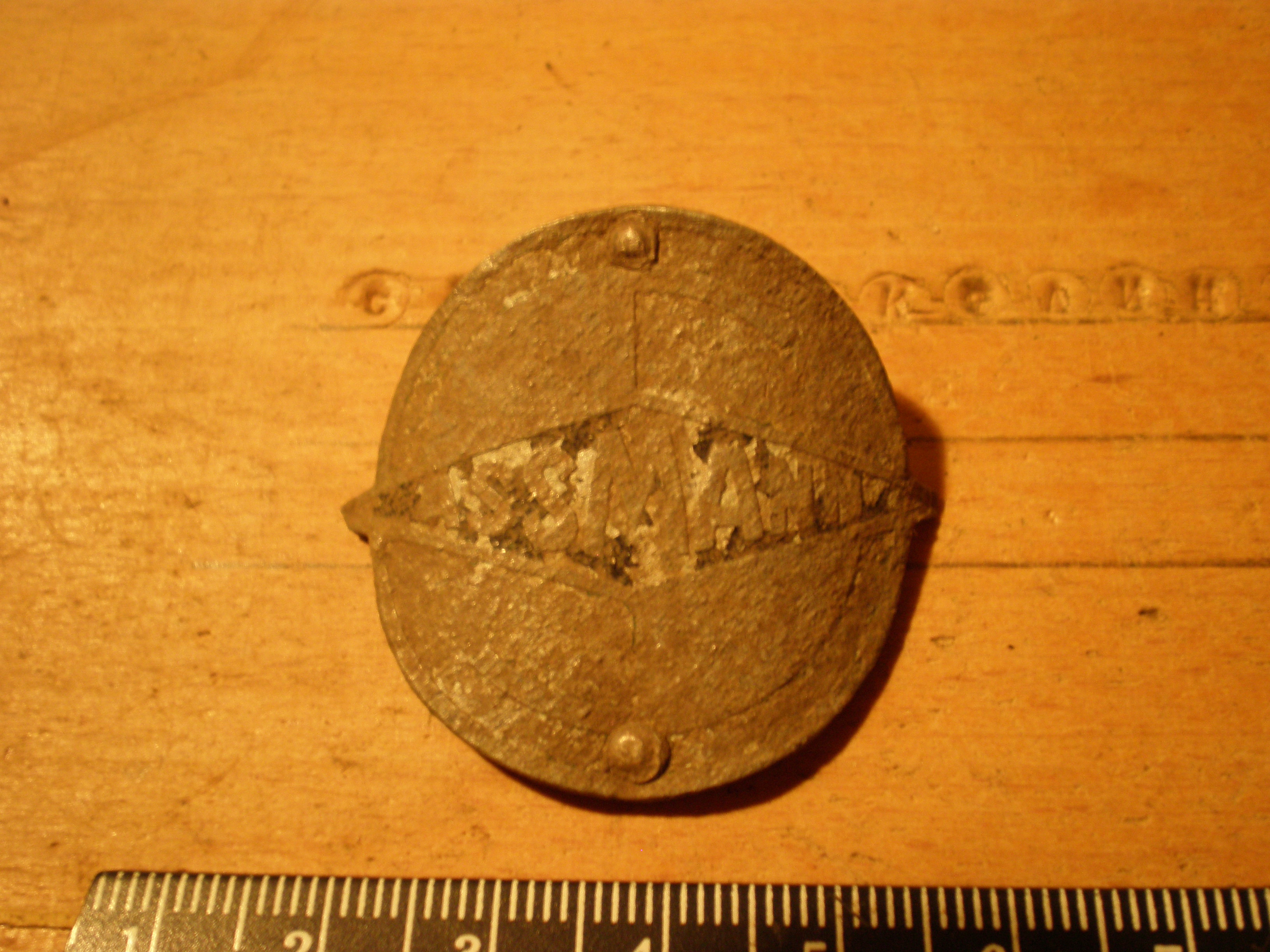 Під час копу по ДСВ трапився ось такий знак - матеріал - алюміній,особисто мені вбачається на ньому напис "SSMANN",виходячи із закльопок позаду та характерного вигину,скоріш за все,це шильдик від якоїсь німецької техніки,можливо,мотоциклу,але жодної техніки з такою назвою я не знаю,скоріш за все,це не марка,а знак,який означав належність чогось до частин SS ? Може Ви підкажете?