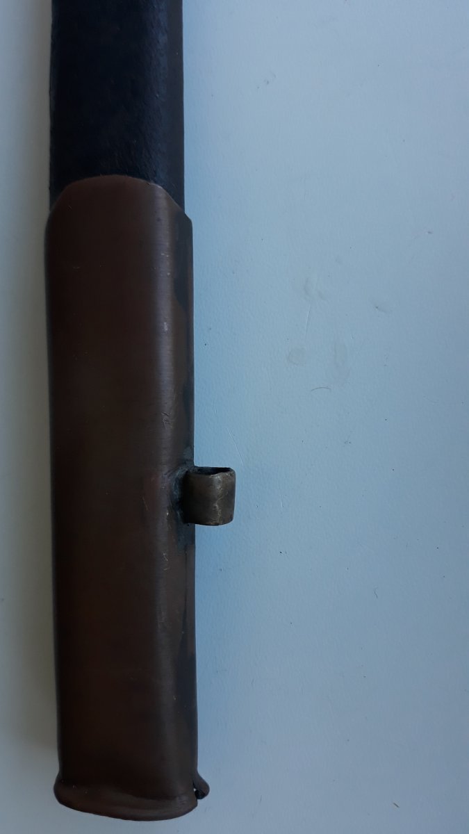 Добрий вечір, Прошу допомогти визначити шпагу. Як на мене, то це Німеччина або Австро-Угорщина. Ефес латунь. Черен схожий на новий. Клейм немає. По лезу гравіювання. Рівний, семетричний. Піхви із припаяними вушками. Довжина 86 см. Лезо 70 см.