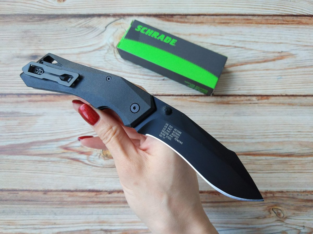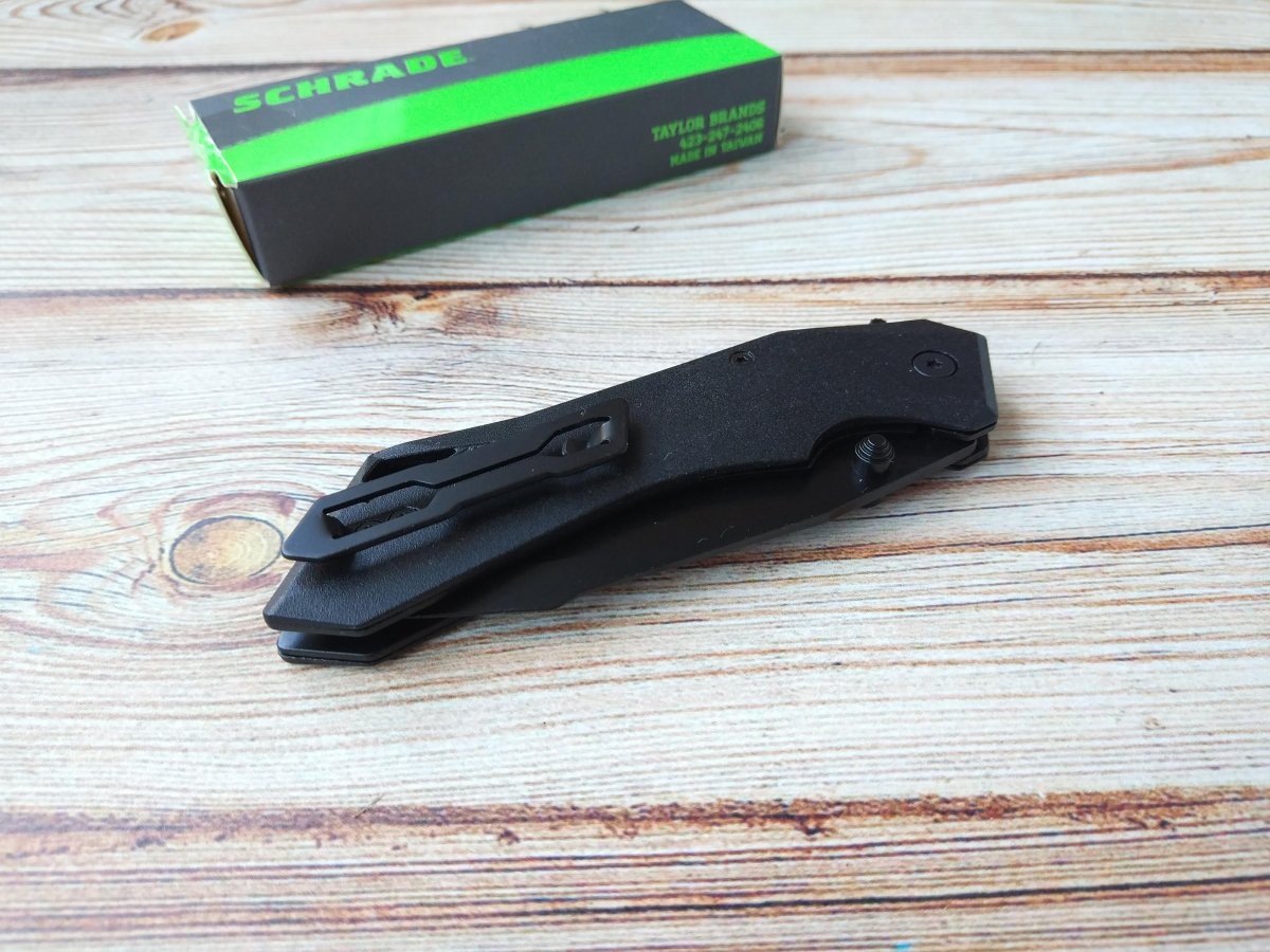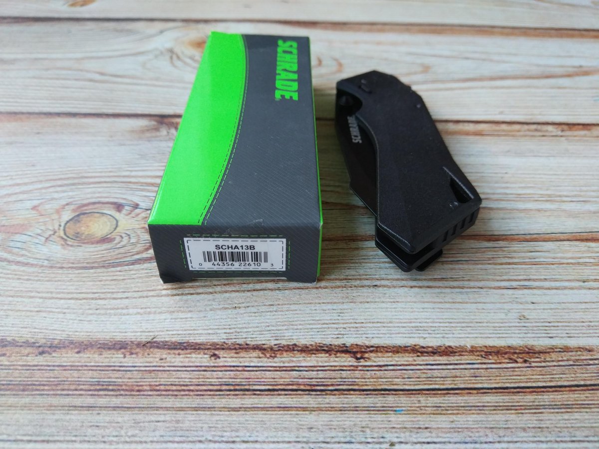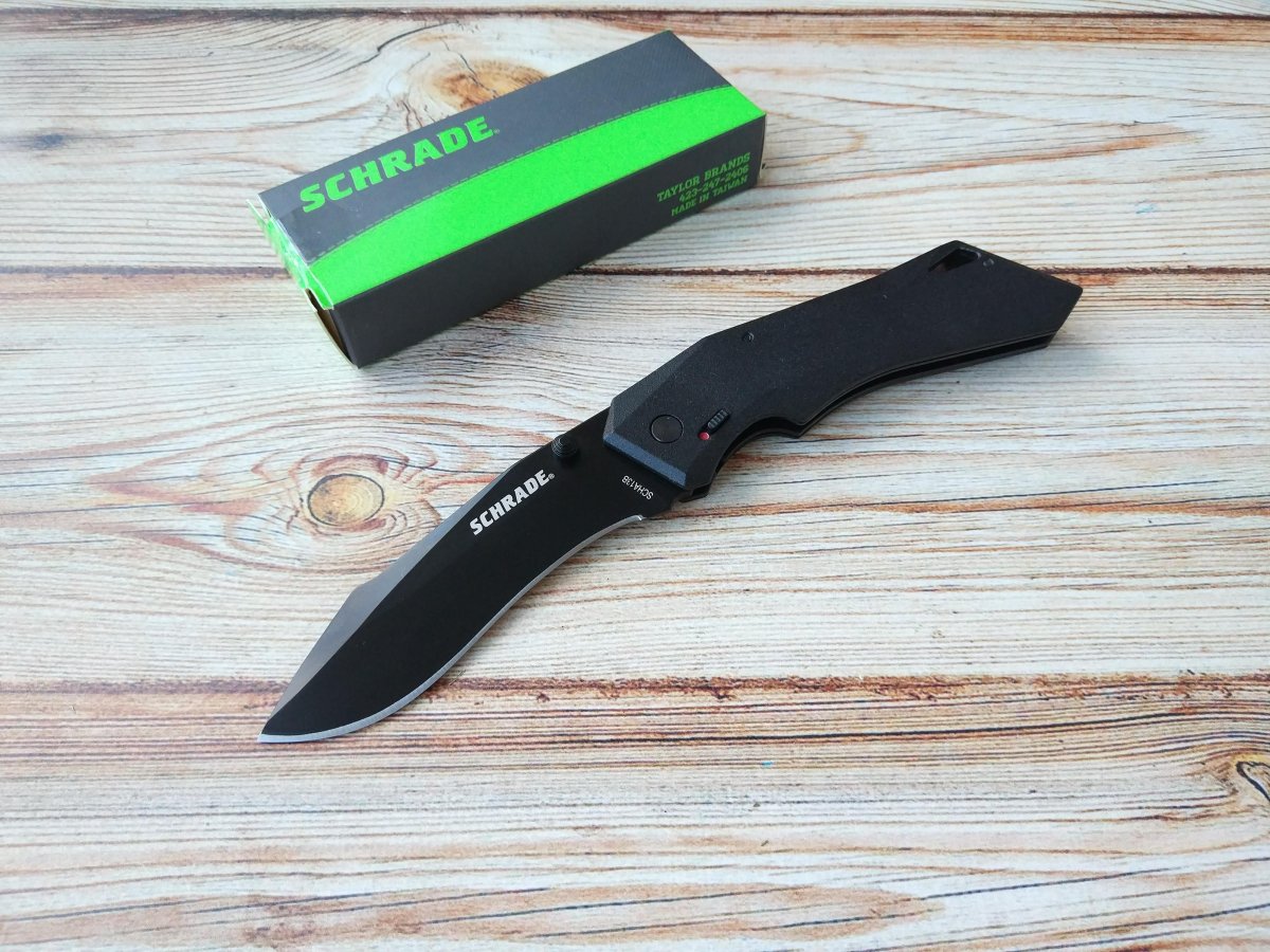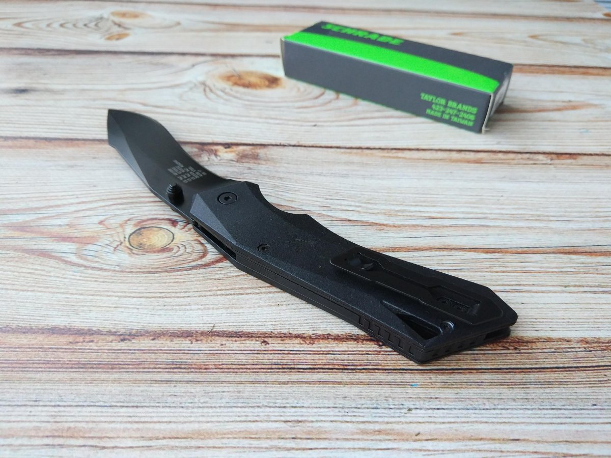 Предлагаю складной нож от компании Taylor Brands LLC (Schrade). Модель Shiznit SCHA13B. Оригинал. Компания Schrade широко известна на ножевом рынке и имеет довольно долгую и разнообразную историю развития (которую мы уже более подробно рассматривали в других темах с ножами этой компании). На данный момент активы и интеллектуальная собственность корпорации находятся по договору в управление компании Taylor Brands LLC. Главный офис Taylor Brands LLC располагается в городе Кингспорт (штат Теннесси, США). Продукция современного бренда Schrade — это складные ножи для EDC, тактические модели и мультитулы, линейка моделей полуавтоматических и выкидных фолдеров (мало кто знает и помнит, но компания была одним из «пионеров» в этом сегменте и ей до сих пор принадлежит целая серия патентов в этой сфере). Также компания выпускает тактические фикседы, «внедорожные» модели и мачете. Теперь же перейдем непосредственно к модели Shiznit SCHA13B. Этот нож как раз и относится к «семейству» полуавтоматических EDC (Every Day Carry) ножей. Первое что бросается в глаза это необычный дизайн этой модели, этакий «EDC 22 века» Клинок - вариация «на тему» Clip Point заточкой изготовлен из стали AUS-8. Эта японская сталь обладает хорошим соотношением эксплуатационных характеристик к стоимости и используется очень многими производителями. Сталь AUS-8 отличается неприхотливостью, пластичностью и стойкостью к ударным нагрузкам – то, что нужно рабочему EDC ножу. В самой компании форму клинка охарактеризовали как Modified Clip Point, но это весьма относительное название, так как в форме явно прослеживаются элементы свойственные и другим типам клинков – Drop point, Kukri (Khukri) и других. Но сам клинок вышел вполне функциональным и при этом интересным и красивым. Финишное покрытие клинка - Black Coating. Механизм открытия - запатентованный механизм M.A.G.I.C. (Multipurpose Assisted Generational Innovative Cutlery). Нож можно открыть либо нажатием на рычажок, расположенный на спинке рукояти, либо толчком по шпеньку, а дальше открытие произойдет автоматически при помощи пружины. Система так же оборудована ручным предохранителем, для большей безопасности при эксплуатации. Замок - простой и надежный Liner Lock. Рукоять состоит из стальных лайнеров, накладок из алюминия с, так называемой, 3D обработкой и финишным покрытием черного цвета. Рукоять вполне удобна для обычных видов EDC работ (силовые всё же лучше проводить в перчатке). А небольшая общая толщина в сочетании с небольшим весом способствует удобству ношения «на кармане» и/или в сумке «на каждый день». Съемная клипса и отверстие под темляк дополняет общую картину. В итоге мы получили нож с очень интересным дизайном из качественных материалов и по доступной цене. Нож, который не только справится с EDC-задачами, но и сможет сыграть роль стильного аксессуара. Да и просто «поиграться и поклацать» им приятно… Видео от производителя: Еще одно, для наглядности: Обзоры по этой модели в сети есть, желающие могут дополнительно поискать-посмотреть. Характеристики, заявленные производителем: Общая длина: 196 мм. Длина клинка: 87 мм. Толщина клинка (max): 2,6 мм. Материал клинка: AUS-8 Stainless Steel (58HRC). Материал накладок рукояти: Black Aluminum. Механизм фиксации: Liner Lock. Тип клинка: Modified Clip Point. Финиш клинка: Black Coating. Механизм открытия: M.A.G.I.C. (Multipurpose Assisted Generational Innovative Cutlery) mechanism. Клипса: Съемная, одно положение Вес: 107 г. Производитель: Taylor Brands LLC (Schrade®) Страна поставщик: США. Ст