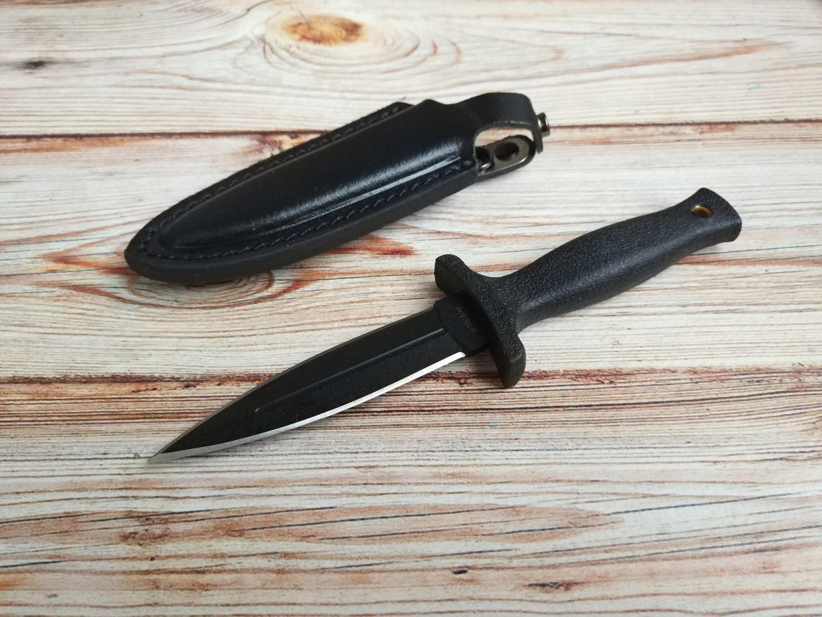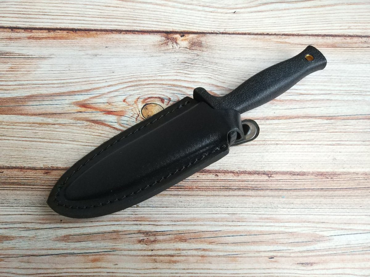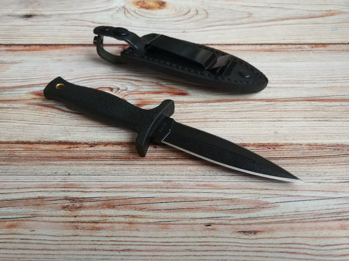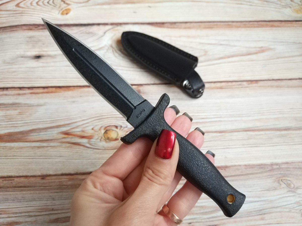 Предлагаю нож с фиксированным клинком от компании Taylor Brands LLC (Schrade). Модель SCHF19. Оригинал. Компания Schrade широко известна на ножевом рынке и имеет довольно долгую и разнообразную историю развития (которую мы уже более подробно рассматривали в других темах с ножами этой компании). На данный момент активы и интеллектуальная собственность корпорации находятся по договору в управление компании Taylor Brands LLC. Главный офис Taylor Brands LLC располагается в городе Кингспорт (штат Теннесси, США). Продукция современного бренда Schrade — это складные ножи для EDC, тактические модели и мультитулы, линейка моделей полуавтоматических и выкидных фолдеров. Также компания выпускает тактические фикседы, «внедорожные» модели и мачете. Теперь же перейдем непосредственно к модели SCHF19. Это небольшой кинжал, представитель класса «Boot knife». Основное предназначение таких ножей - скрытое ношения в качестве оружия "последнего шанса". Но ему можно найти и более «мирное», бытовое применение. Клинок кинжального типа, обоюдоострый. Нож изготовлен из стали 7Cr17MoV High Carbon Stainless Steel и имеет черное финишное покрытие Durable Black Coating. Покрытие выполняет сразу несколько функций - придает дополнительную защиту от коррозии, обеспечивает отсутствие бликов (этот кинжал все же разрабатывался в первую очередь как «тактик») и в целом гармонично вписывается в общую концепцию и дизайн. Рукоять выполнена из полимерного материала TPE (Textured Thermoplastic Elastomer), черного цвета. Сцепление с ладонью хорошее, материал тактильно приятен и не требует особого ухода. Гарда ярко выражена и отлита единым целым с рукоятью, что добавляет еще больше безопасности при обращении с ножом. В торце рукояти расположено темлячное отверстие. Нож комплектуется кожаными ножнами (весьма компактные и удобные для скрытого ношения), на которых установлена стальная клипса. Пара видео, для наглядности: Обзоры по этой модели в сети есть, желающие могут дополнительно поискать-посмотреть. Характеристики, заявленные производителем: Общая длина: 177,8 мм. Длина клинка: 91,44 мм. Толщина клинка (max): 3,5 мм. Материал клинка: 7Cr17MoV High Carbon Stainless Steel (57-58HRC). Материал рукояти: Textured Thermoplastic Elastomer (TPE). Тип клинка: Double Edged, Spear Point, Plain Edge. Финиш клинка: Durable Black Coating. Ножны: Black Leather Sheath with Steel Clip. Вес (без ножен): 59 г. Производитель: Taylor Brands LLC (Schrade®) Страна поставщик: США. Страна изготовления: Китай. Упаковка: Фирменная коробка. Нет в наличии. Стоимость: грн. Резервы - в темке, вопросы, пожелания - в личку. Фото: В другие города отправляю Новой Почтой (оплата за доставку при получении, по тарифам перевозчика). Оплата на карту Приват банка. Смотрите и другие мои темки о продаже: Термокружка Contigo SnapSeal Byron Складной нож Cold Steel Broken Skull Blue Складной нож Kershaw Launch 3 Blue Нескладной нож Cold Steel Tai Pan CPM 3V Складной нож Kershaw Leek Складной нож SOG Flashback Складной нож Cold Steel Counter Point 1 Складной нож Kershaw DuoJet Нескладной нож Gerber Mark 2 Нескладной нож Cold Steel OSS Складной нож Kershaw Natrix Нескладной нож CRKT Carson F4 Нескладной нож Cold Steel Counter Tac 2 Складной нож Kershaw Spline Складной нож Taylor Brands LLC (Schrade) SCHA12 Складной нож Cold Steel Golden Eye Tanto Складной нож Kershaw Tension Складной нож CRKT Directive Нескладной нож Cold Steel Tanto Spike Складной нож Kershaw Thistle Складной нож Cold Steel Ti-Lite IV Складной нож Kershaw Injection 3.5 Нескладной нож Ka-Bar EK44 Складной нож Cold Steel Code 4 Spear Point (58PS) Складной нож Kershaw Induction Складной нож Taylor Brands LLC (Schrade) SCH503RB Складной нож Cold Steel Recon 1 Spear Point Нескладные ножи CRKT C/K Dragon Скла