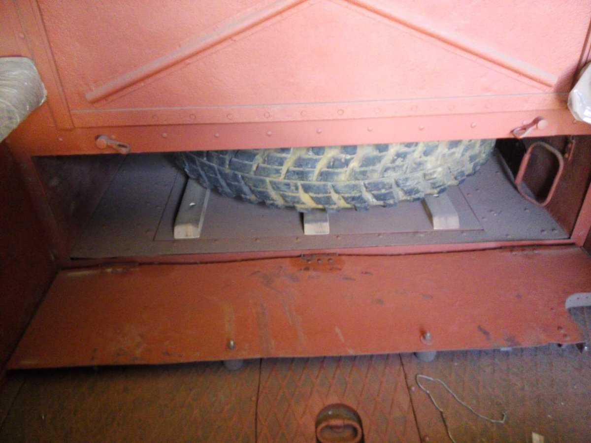 Куплен диск для запасного колеса. Колесо оказалось с Sd Kfz 251- в подтверждение привожу фото с остатками резины с безкамерной конструкцией. На арт. тягачах использовалась камерная резина. Пару фото места размещения запаски на Sd Kfz 11. Еще запасной диск размещался на крыше "багажного" отделения.