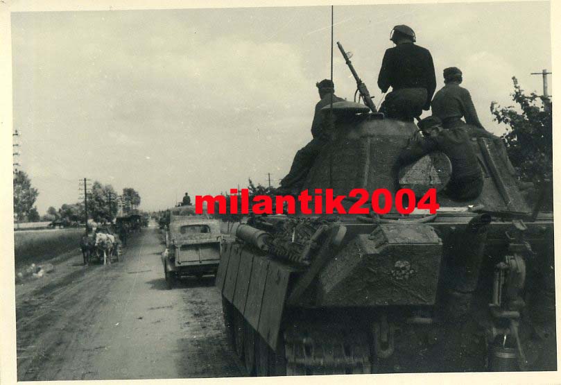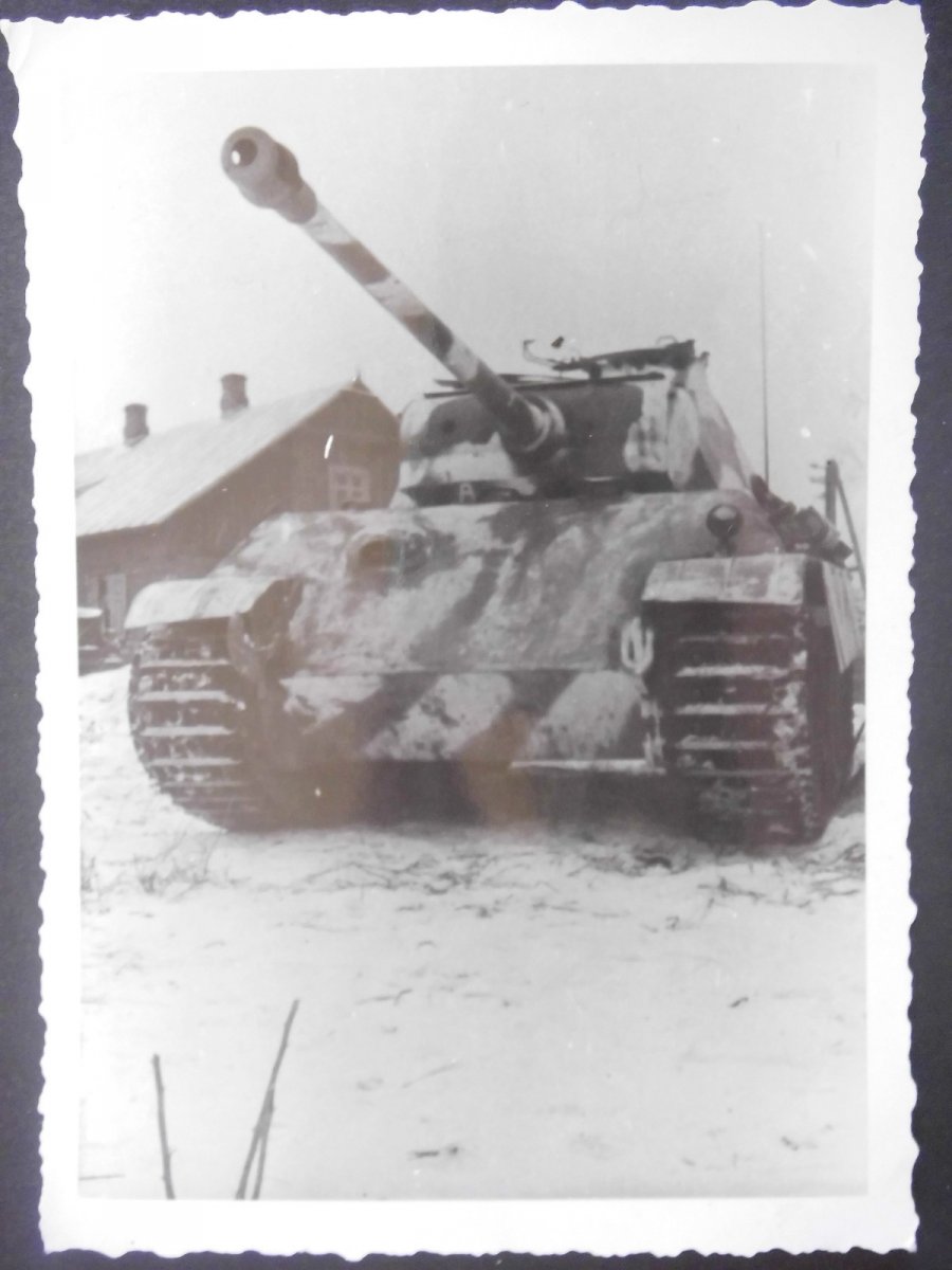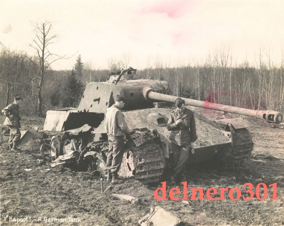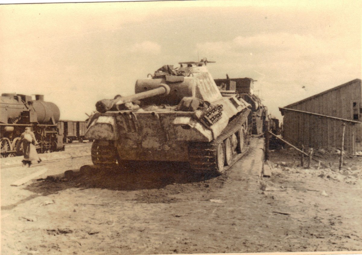 "Эти Пантеры в количестве 70 шт изначально предназначались для LSSAH, но из-за заводских дефектов были забракованы и отправлены на завод на доработку, однако после ремонта они не вернулись в СС, которые к тому времени уже получили новые танки, а поступили на службу в I./Pz.Rgt. 29, в составе которого воевали зимой 43-44 гг. в районе Ленинграда. В феврале 1944 г. оставшиеся Пантеры I./Pz.Rgt. 29 были переданы 11. SS-Pz.Gren.Div. Nordland при этом они поменяли маркировку. Касательно фото, оно сделано в 1944 г., когда танки пособирали по полям после зимних боёв и отправляли на переплавку, судя по номерам танки не успели попасть в Nordland." ©
