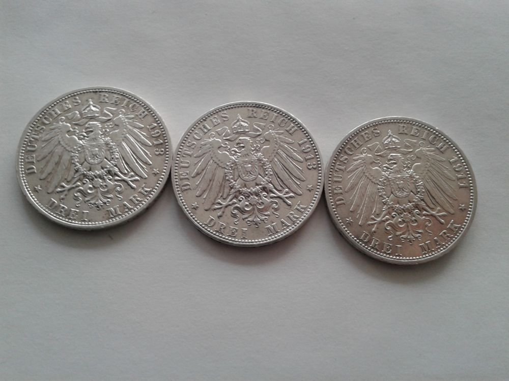 1).3 марки 1913 г. Лейпциг,Битва народов.Цена 750 грн.2).3 марки 1913 г. Гамбург Цена 750 грн.3). 3 марки 1911г Вильгельм Цена 450 грн.