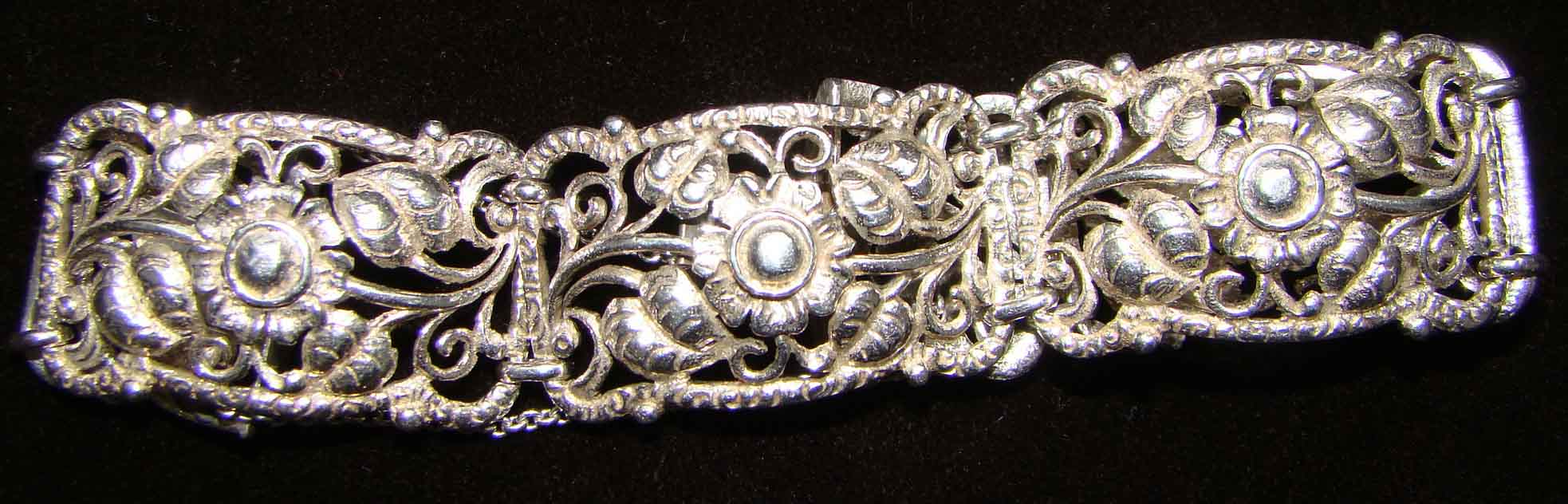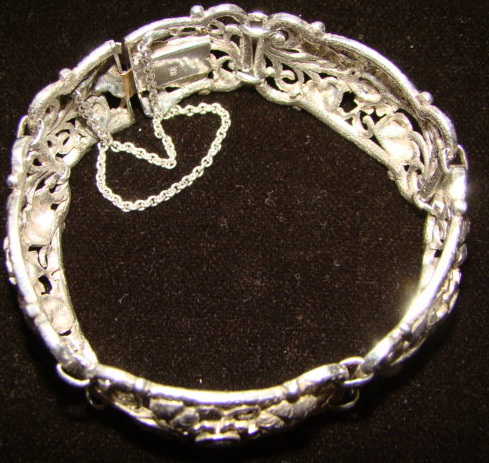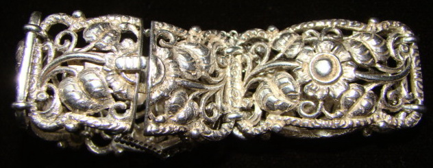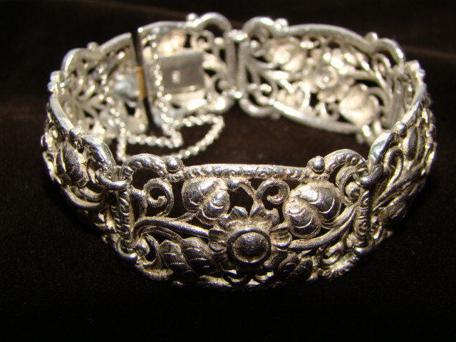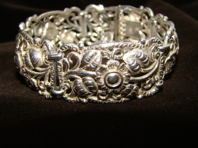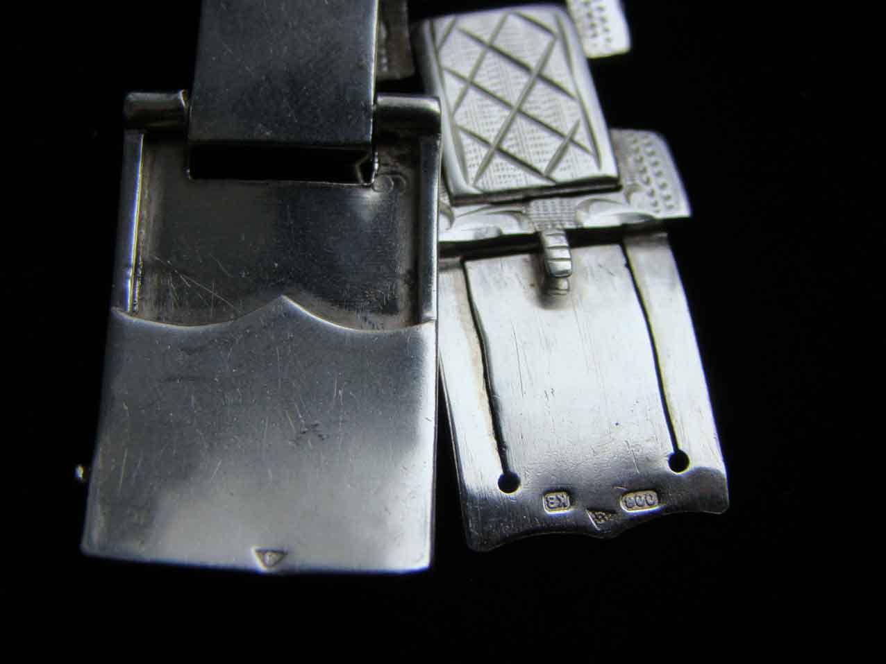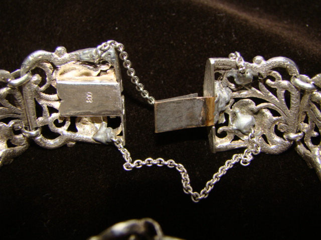 есть несколько серебряных браслетов, с которыми надо расстаться. Но в теме не очень то силён. Поэтому интересует мнение тех кто в этом понимает. вот парочка пока. №1 Югендстиль/Модерн, ориентировочно 1910-1920-е гг. Серебро 800. цепочки припаивались заново - довольно топорно. И защёлка тоже менялась с одной стороны (не там где проба стоит). длина 19 см, ширина 2,3 см. Вес 44,3 гр.