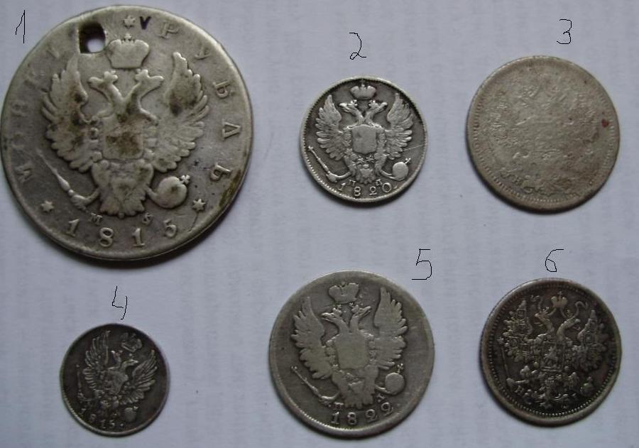 Рубль и 20 коп 1880г в таком плачевном состоянии безценны. 10 коп 1820г - до 100гр 5 коп 1815г - до 100гр 15 коп 1876 - до 50гр Удачи.