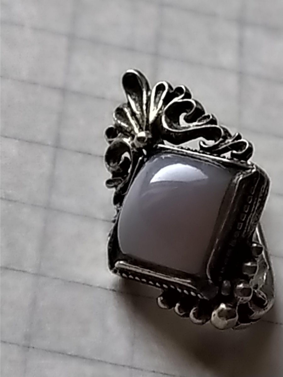 Не волнуйтесь,хорошие камни в мельхиор не ставят. Скорее всего это "голубой эпоксидий" или "молочный стекляний".