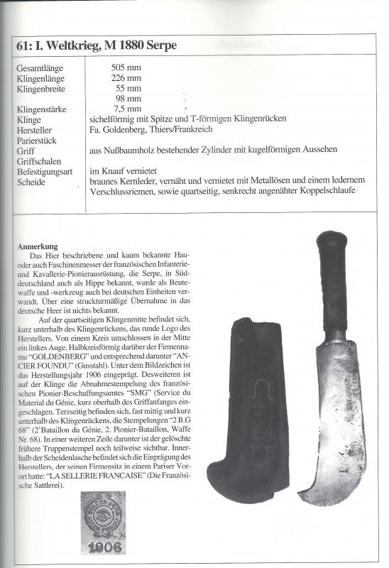 Как траншейный нож? Ой ли... Саперный серп-тесак-минимачете - да. Форма такая, что он скорее для ритуального обезглавливания подойдет, нежели для траншейного боя. ИМХО это скорее инструмент, а в бою мог использоваться наравне с саперкой.