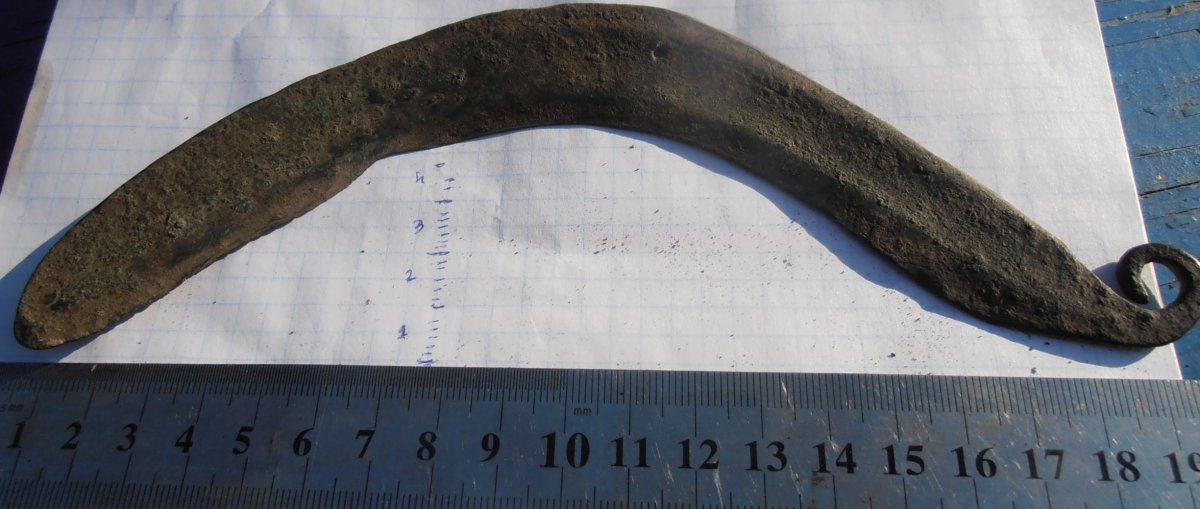 Здравствуйте..похоже на серп,подскажите по вековым рубежам чей кто потерял..найден в Херсонской обл,на склоне к Днепру у старого давно забытого села.у нас курганов много Скифских,может они потеряли? спасибо!