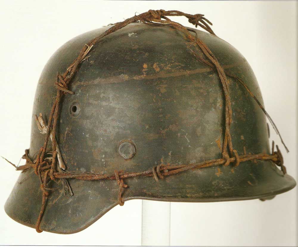 Добрый день.На немецких позициях попалась такая сетка.Материал-медная проволока.Попробовал одеть на шлем,вроде бы она.Может кто то встречал похожее?