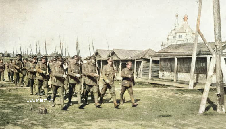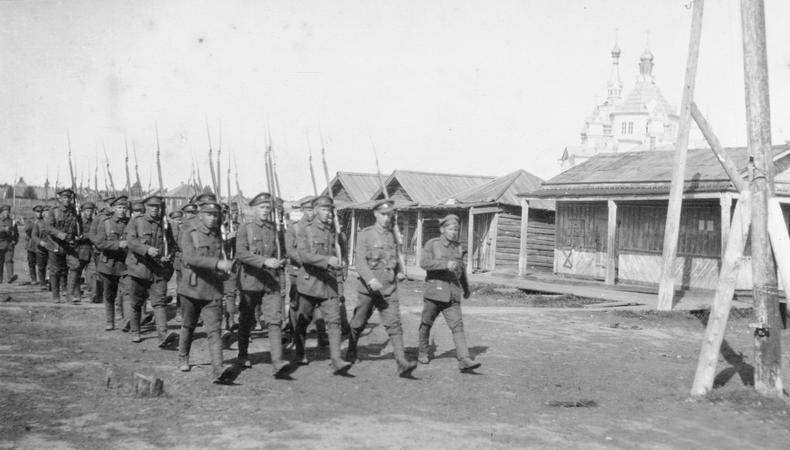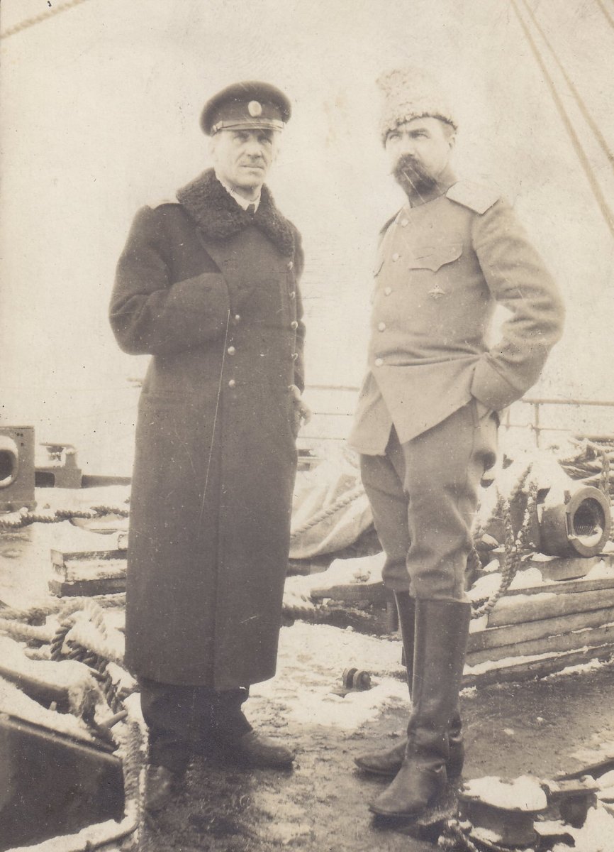 Командир 1-го Отдельного рабочего батальона Северной области полковник Естифеев и его помощник (слева). 1919г.