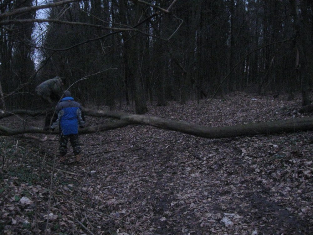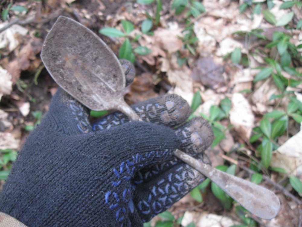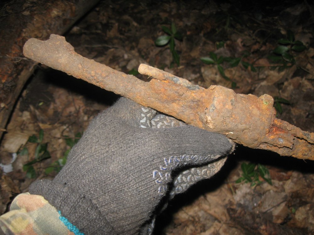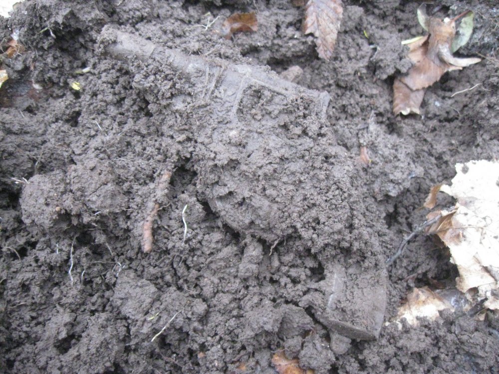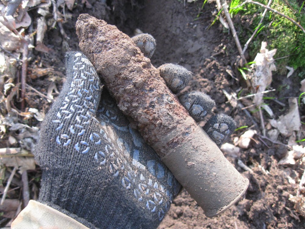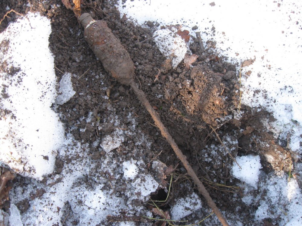 С утра, пока был избыток силы, мы попробовали удачи в вскрытии не докопанных осенью позиций. После часа землеройных работ, накопав пол ведра стреляных гильз и кучи колючки, это занятие было решено оставить к весне :) По находка в этот день было не густо, но чем богаты - тому и рады ...