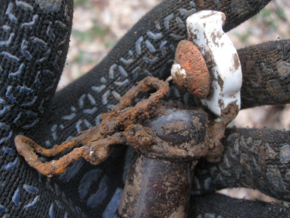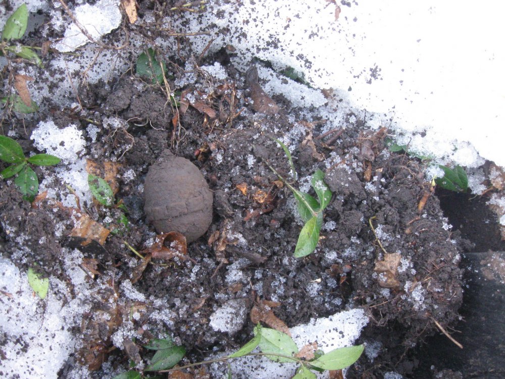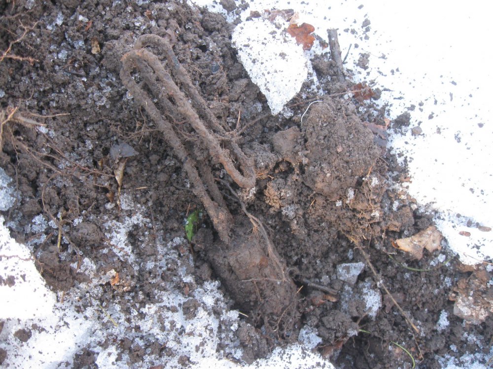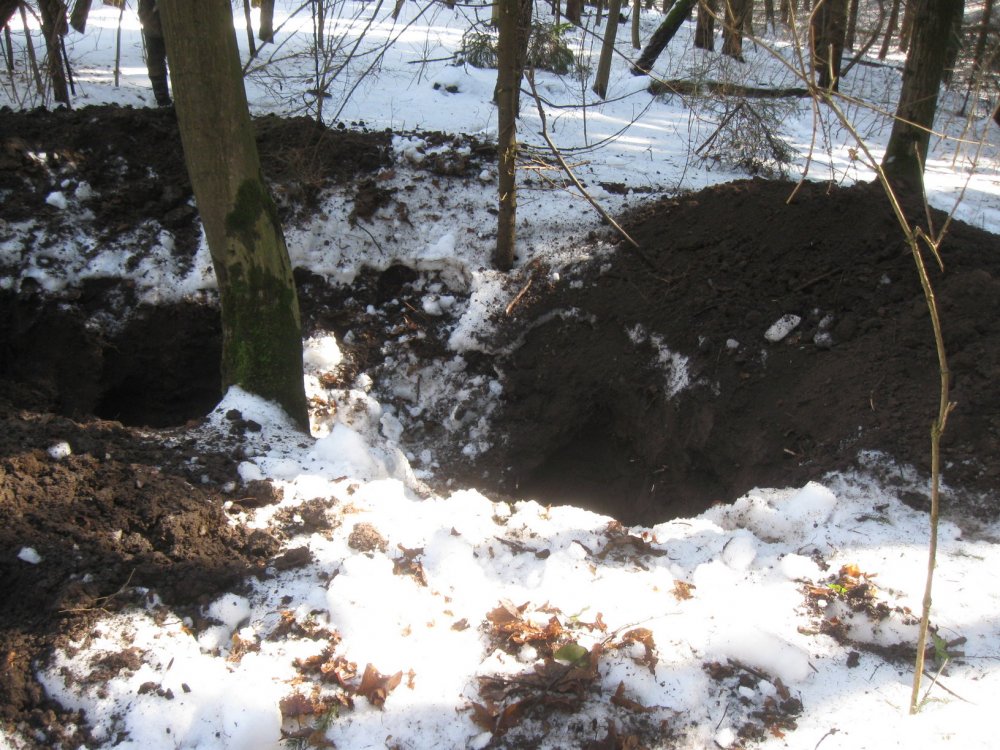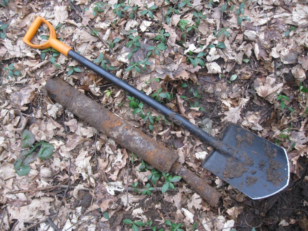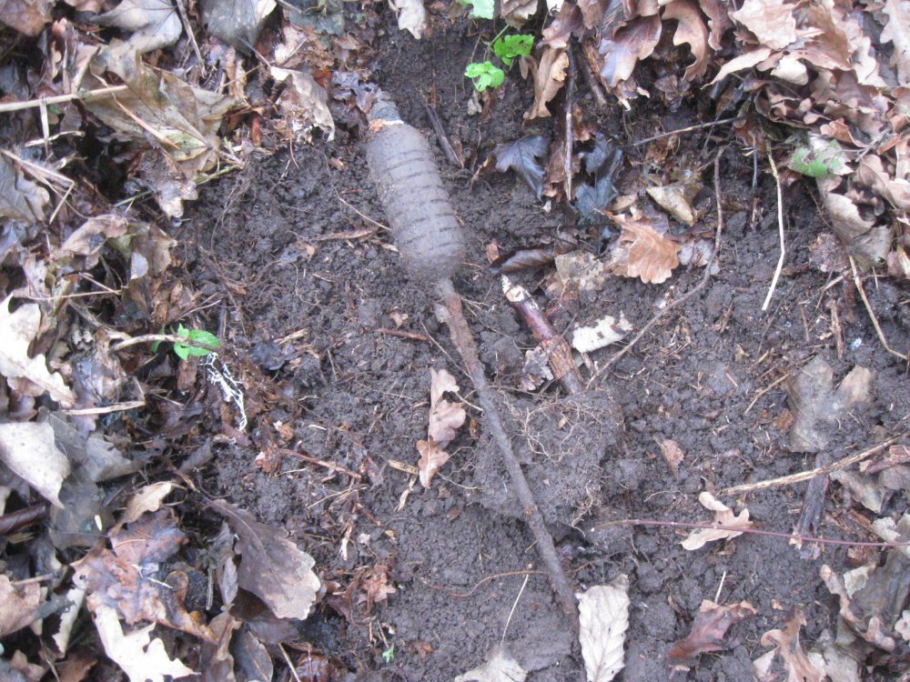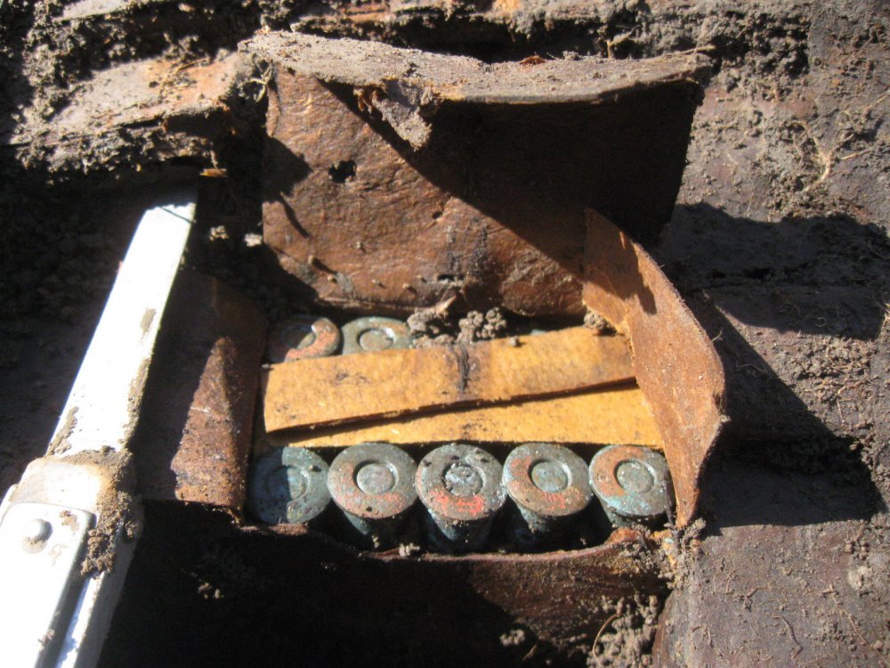 С утра, пока был избыток силы, мы попробовали удачи в вскрытии не докопанных осенью позиций. После часа землеройных работ, накопав пол ведра стреляных гильз и кучи колючки, это занятие было решено оставить к весне :) По находка в этот день было не густо, но чем богаты - тому и рады ...