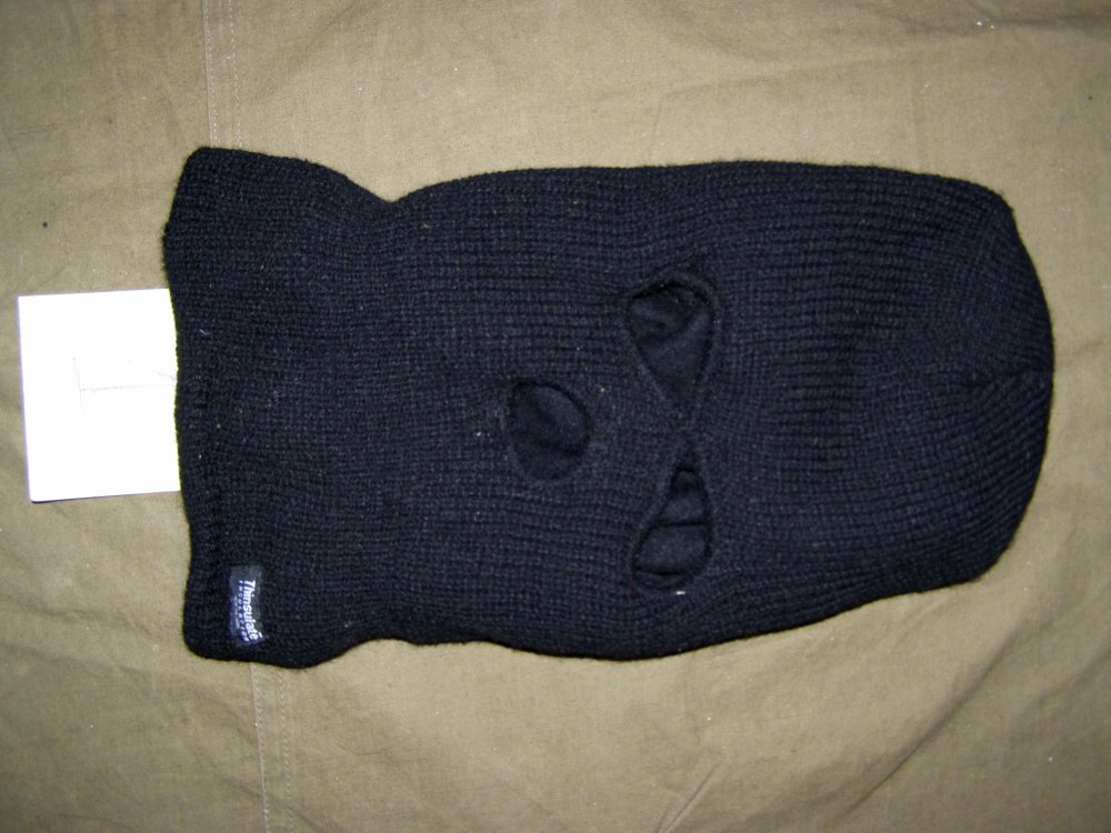 Лот 1. Балаклава. Черная. Очень теплая. Верхний слой - вязанная пряжа, внутри подклад - типа флиса, между ними утиплитель Тинсулейт. Производитель - Мил-Тек. Цена - 100 грн. 80 грн