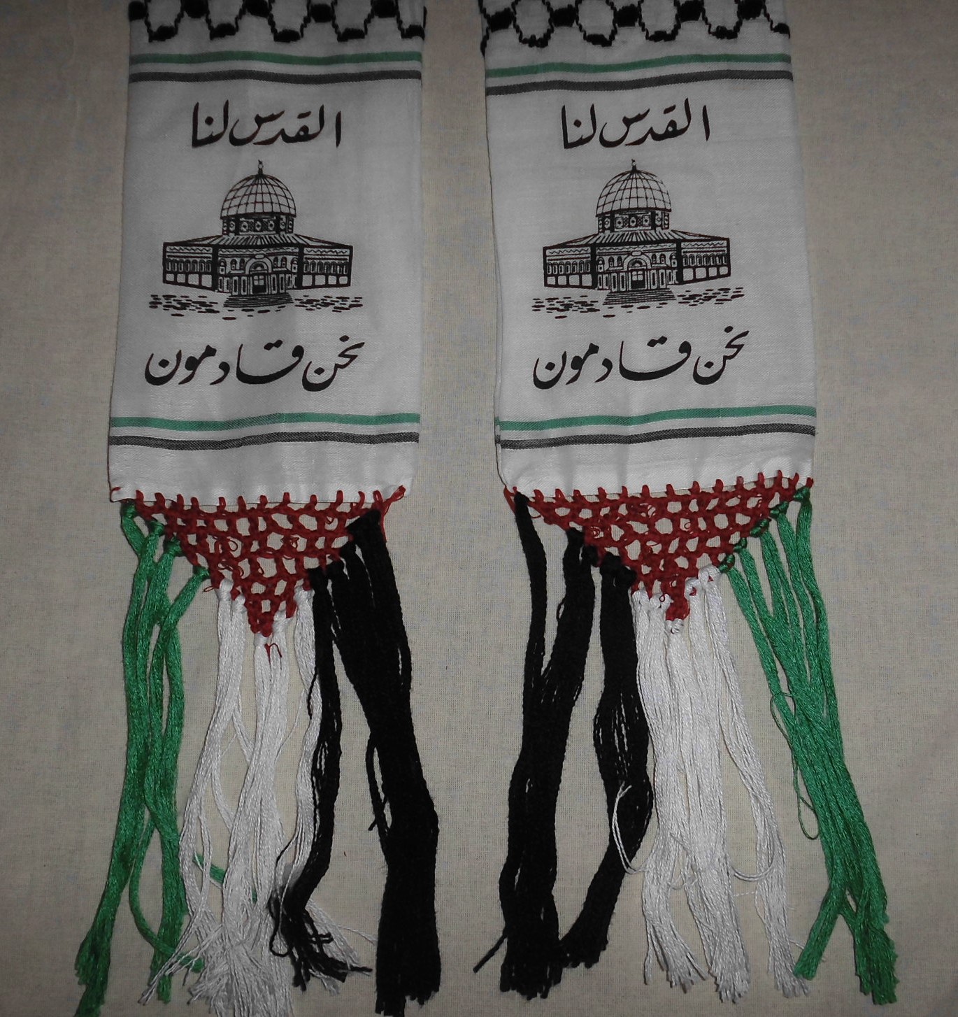 Тонкий двошаровий котоновий шарф з узором палестинської арафатки та зображенням мечеті аль-Акса,