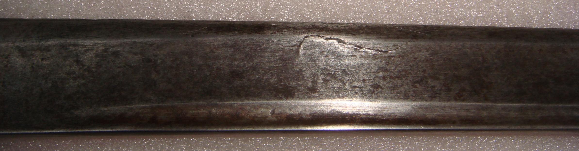 Нет, это место непроварки стали, которое не влияет на качество изделия. Пример на фото. В том числе об этом хорошо написано в книге Окунцова "Златоустовская оружейная фабрика. Рекомендую. Многие вопросы исчезнут сами.
