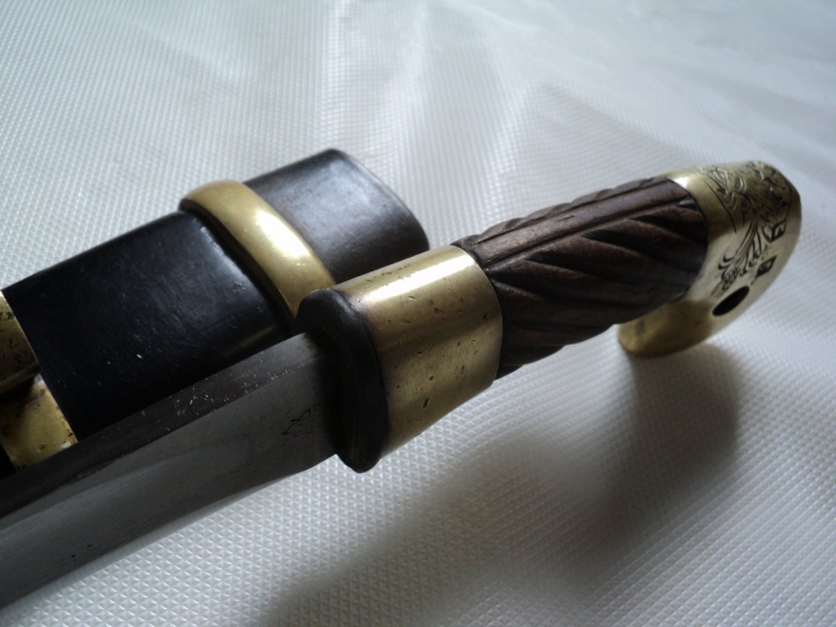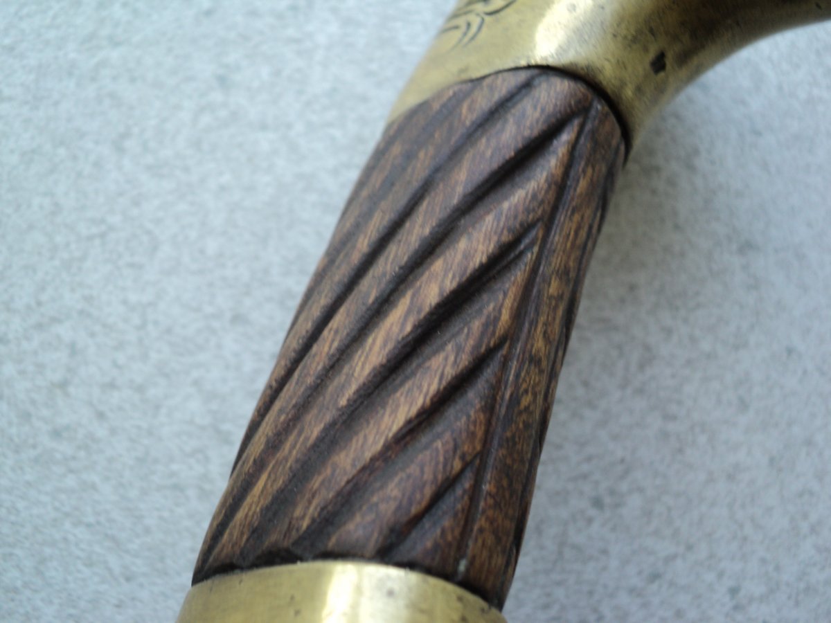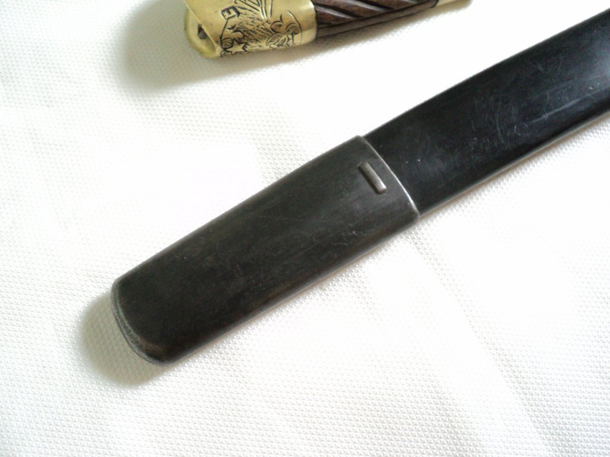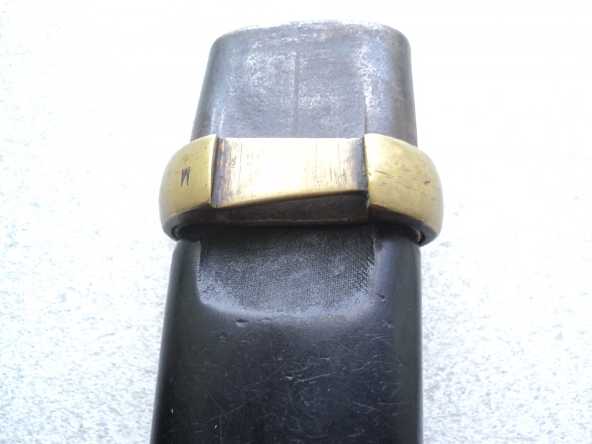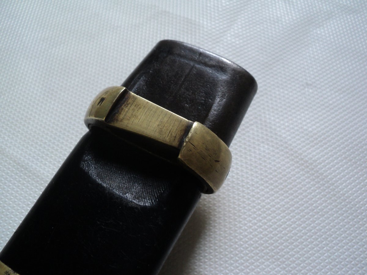 Спасибо за столь содержательную оценку. Также предполагал,что ножны реставрировались.Ткань на ножнах видна только в углублении около кольца. Ножны полуматовые,кстати имеют специфический запах не сравнимый ни с чем- пропитка? Ещё несколько фото .