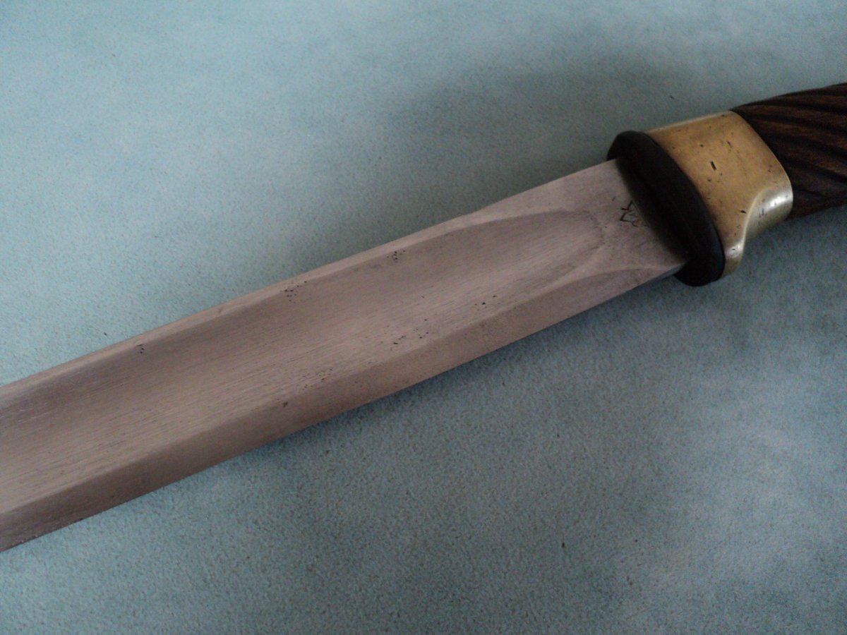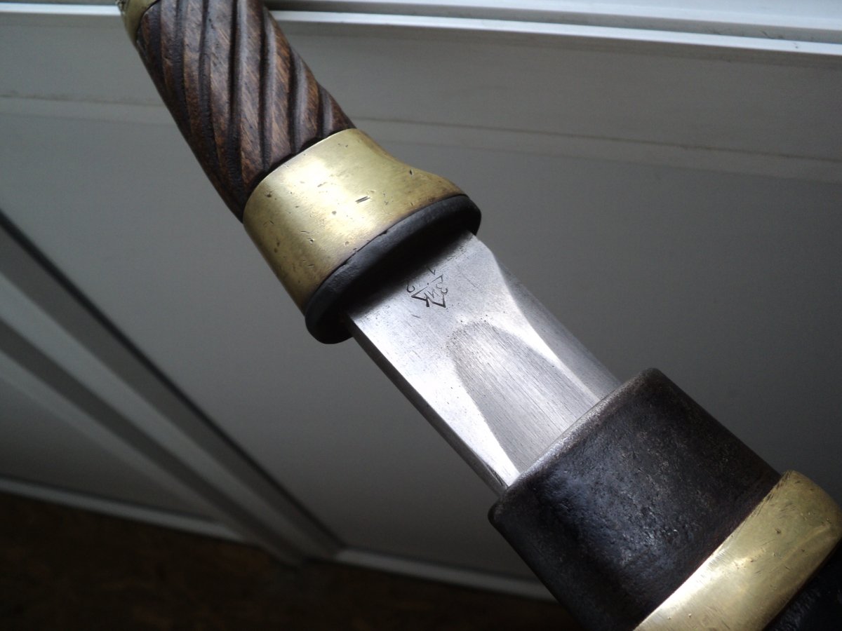 Давайте разбираться. 1. Тип головки третий. Упрощённое производство. Имели место быть с 1941 по начало 42 года. 2. Клеймо ЗиК в треугольнике. Год выпуска обозначается четырьмя цифрами. Применялось с 1938 по 1944 с тремя типами головок (2,3 и 4). В данном случае 1942 и 3-й тип головки. 3. Буквенное клеймо старшего арт.приемщика "М" на пяте клинка и больстере применялось с 1938 по 1942 годы. 4. С 1941 года сбег дола на пяту клинка стали делать полукруглым. Что мы и наблюдаем в Вашем случае. Четыре совпадения. На первый взгляд ничего не вызывает отторжения. Правда никогда не встречал клейма 1942 года с третьим типом головки. Только с четвертым. Но судя по хронологии такое вполне могло быть. И тогда это похоже достаточно редкий экземпляр. Из выпущенных в начале 42-го года.