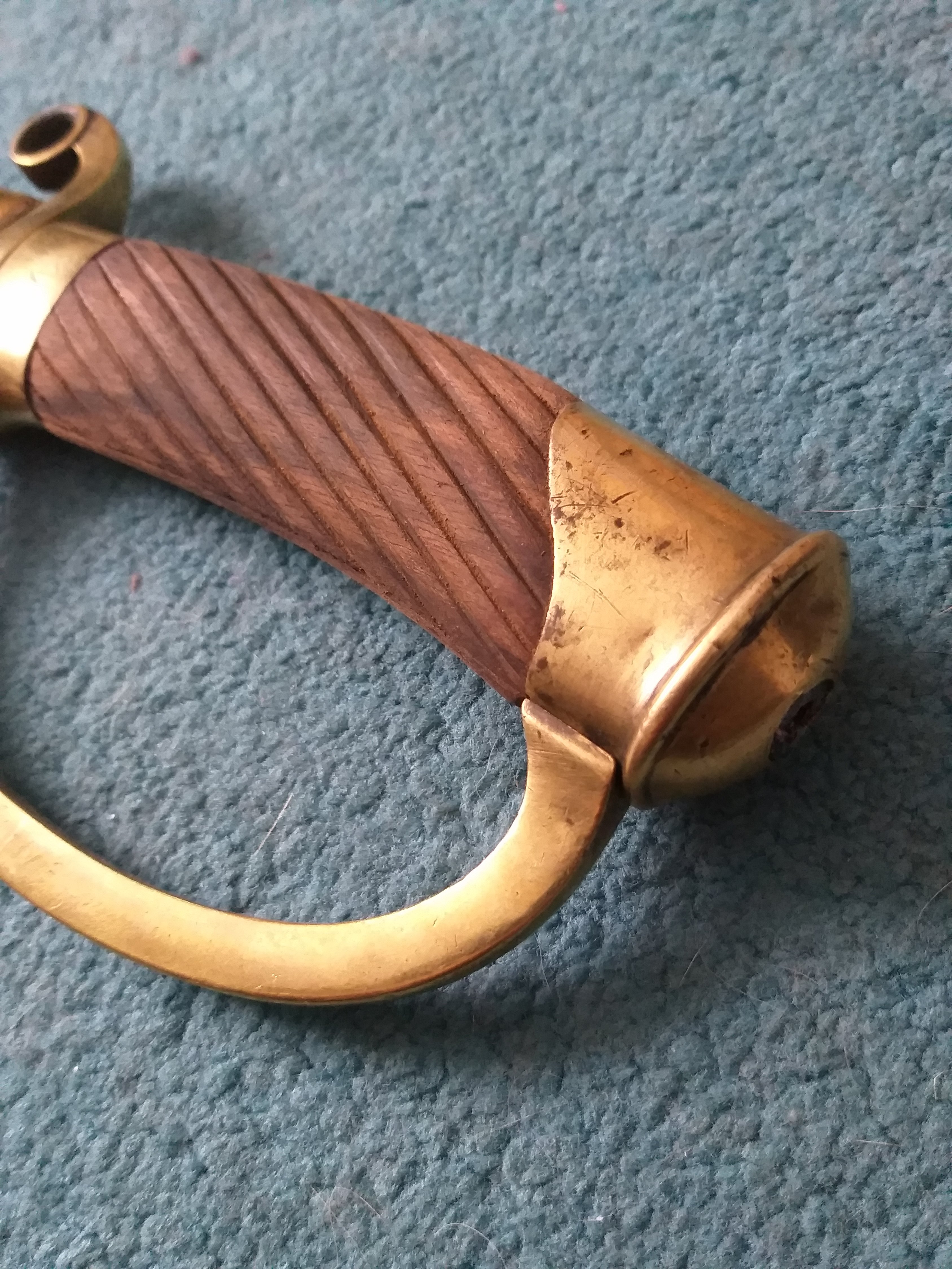 Не вгадали, латунева ручка з цієї шашки і на одній даті, що стосується ножен, по ній запитань не було.