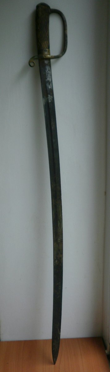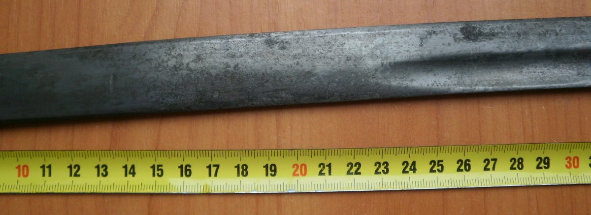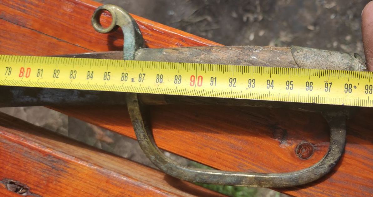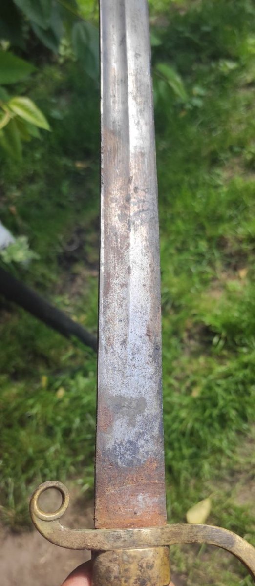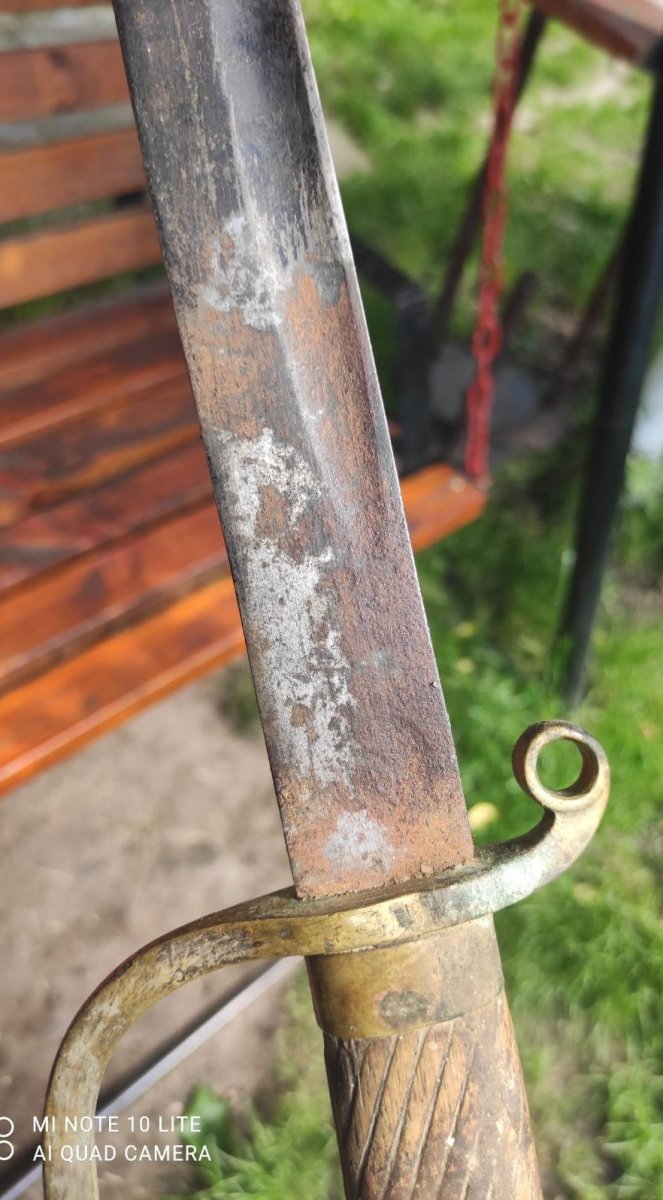 Покажите устье ножен с обеих сторон. И ещё раз промерьте длину клинка.. Пока что видится редкая ранняя артиллерийская шашка.