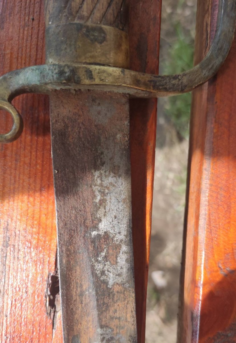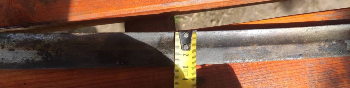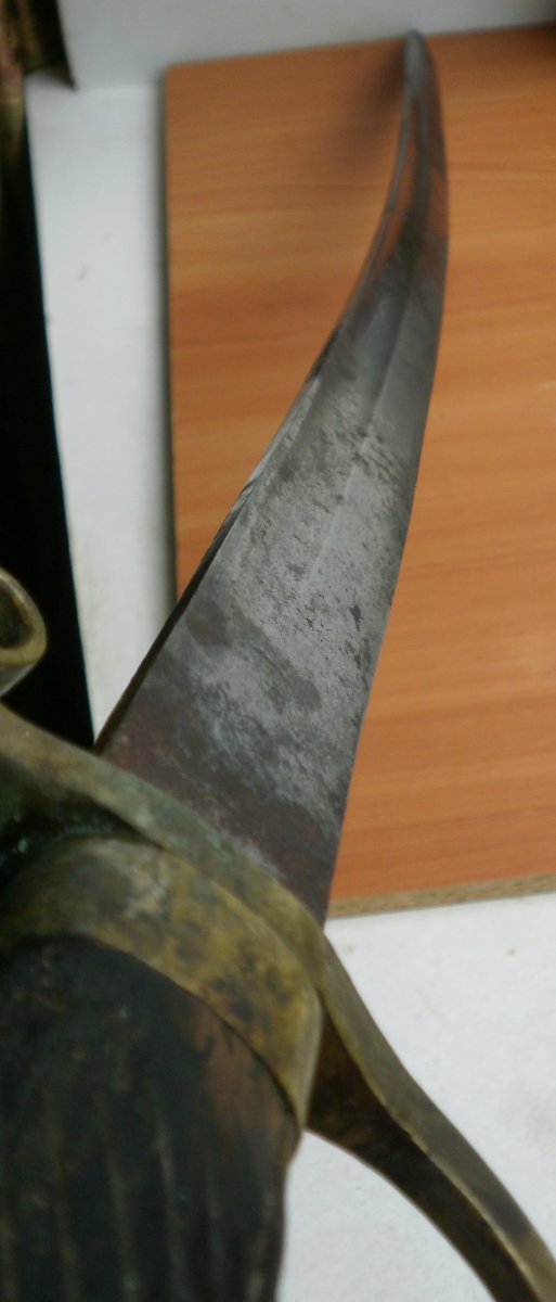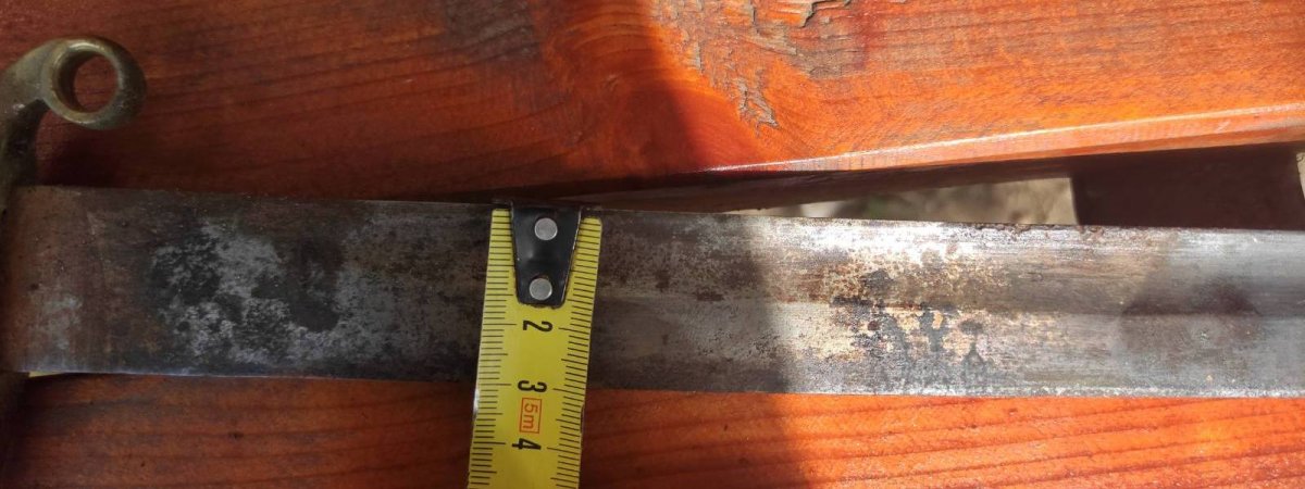 Вот еще мнение специалиста по шашкам . Цитирую " А с чего вы взяли, что это тула? Гарда от артиллериста и скорее всего златоуст, по крайней мере клейма "тоз", я не вижу, а вот кольцо устья явно златоуст о чем кричит клеймо "А". По клину, он явно не от сюда, похож на ранний драгунский, но в 86 году их уже не выпускали. Боевой конец вообще косит под немецкий клин. Если не сложно, дайте толщину боевого конца, судя по граням заточки, он довольно толстый" Боевой конец 3 мм.
