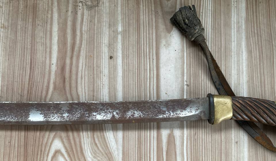 М27 производства одного из непрофильных предприятий, кто именно производитель на вскидку не скажу. Шашка на любителя, так как довольно корявая, но такими их выпускали.