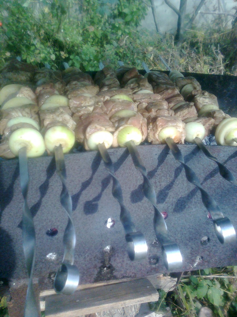 Доброго, курячі гомілки вимочили с пів години у воді дві столових ложки меду і гірчиці з банки склянок, звичайна покупна. Сіль спеції трави різні, багато лука ріпчастого кільцями бо в мене всі його люблять. З ранку поставили у холодильник в обід на решітку і смажити до готовності. Тікі треба дивитися та часто перевертати бо мед трішкі швидше пригощає, а так смакота рекомендую !!!! З Повагою.