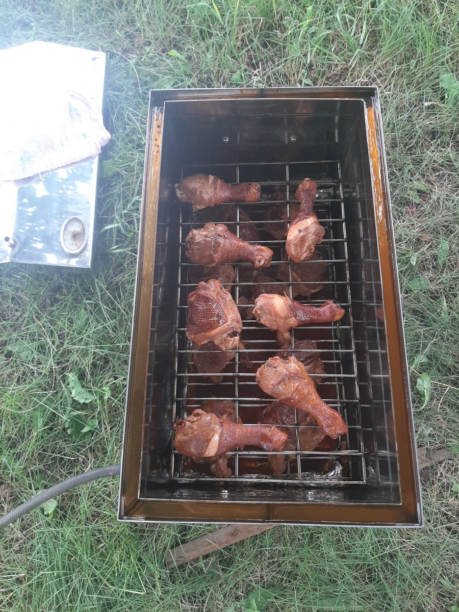 Доброго здоров'я, в мене батько робив в гусятниці старий, щепу робив сам з яблуні і груши, технологію не підкажу. Давно то було мені в той час не до того було. Ставив на маленькій вогонь в літній кухні на пару годин, решітка десь на рівні 2-3 см і щепу клав на сантиметр правда з часом требо було добавляти. Смачно було. Вдалих спроб і чекаємо фото .