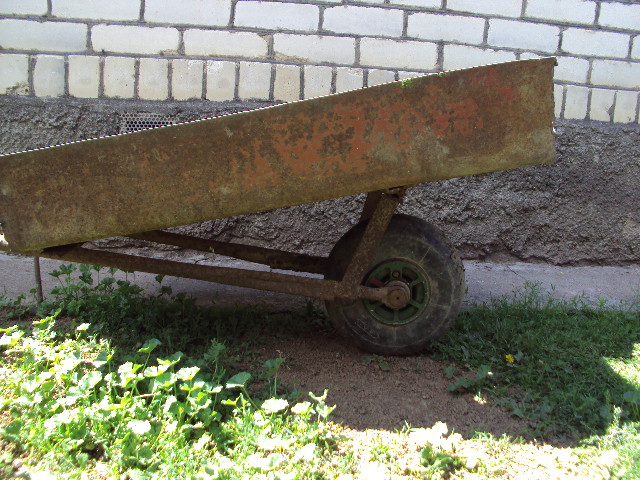 Общая длина примерно 85 см, диаметр колеса примерно 26,5 см
