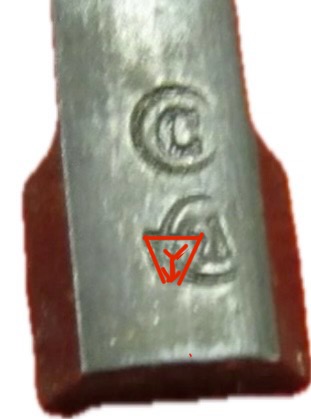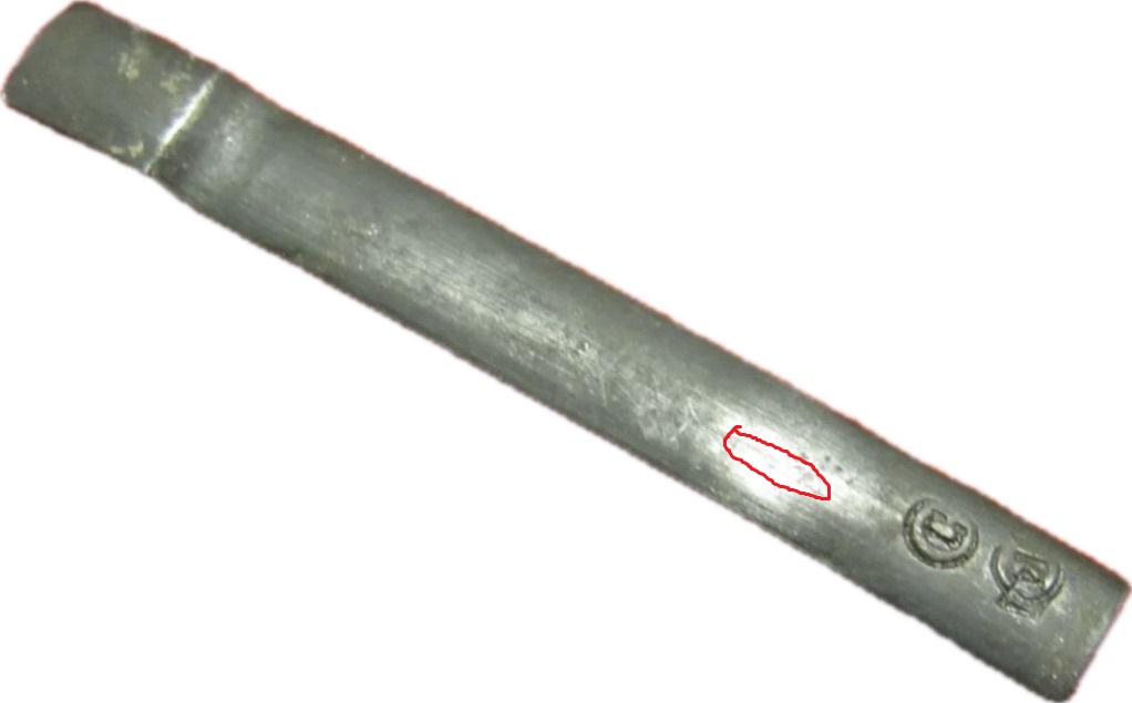 Кращі фото зроблю, як предмет буде у мене…роздивлявся пів дня, але сестрорецька не побачив. Вважаю що там залишки трикутника і стріли, ну або щось схоже на це.