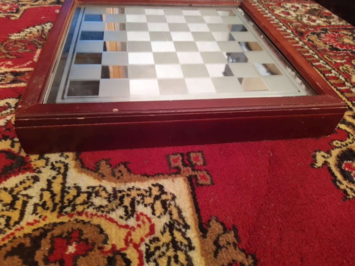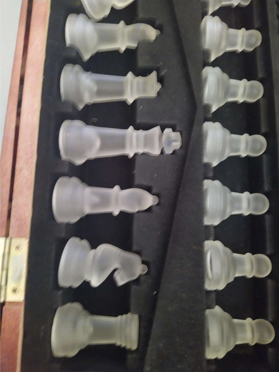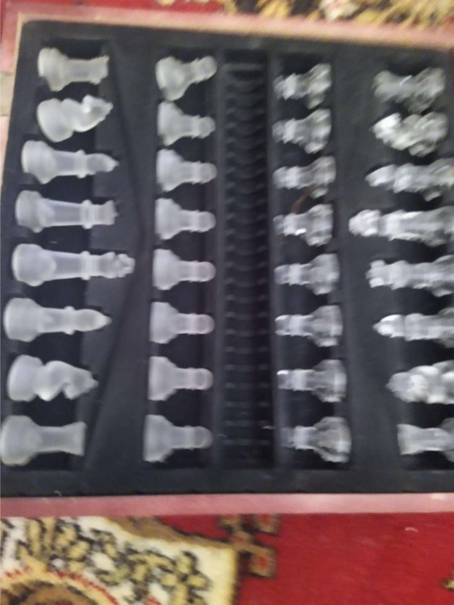 Добрый вечер,подскажите пожалуйста что за шахмоты? И каких годов? Коробка дерево, закрываеться, в средине ячейки для хрустальных? или стеклянных? фигурок, поле для шахмат вроде стекло? Розмер 35см на 35 см.