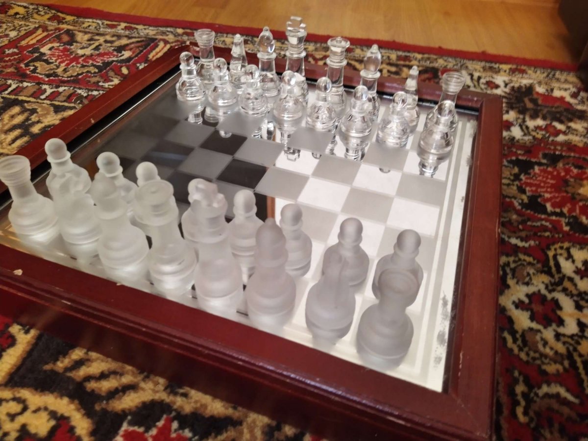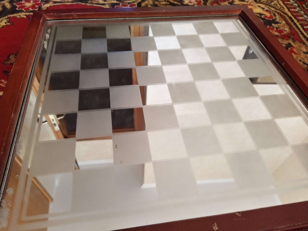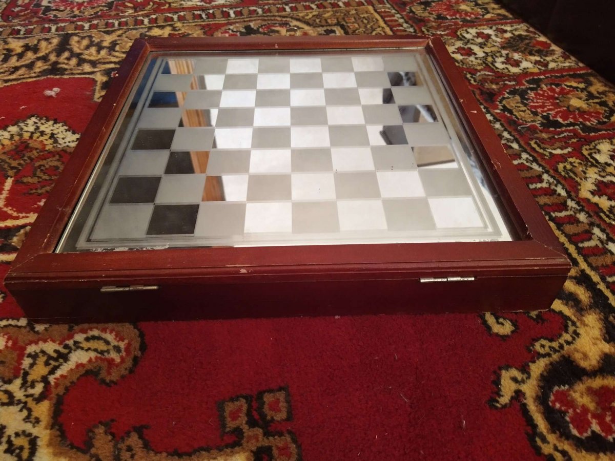 Добрый вечер,подскажите пожалуйста что за шахмоты? И каких годов? Коробка дерево, закрываеться, в средине ячейки для хрустальных? или стеклянных? фигурок, поле для шахмат вроде стекло? Розмер 35см на 35 см.