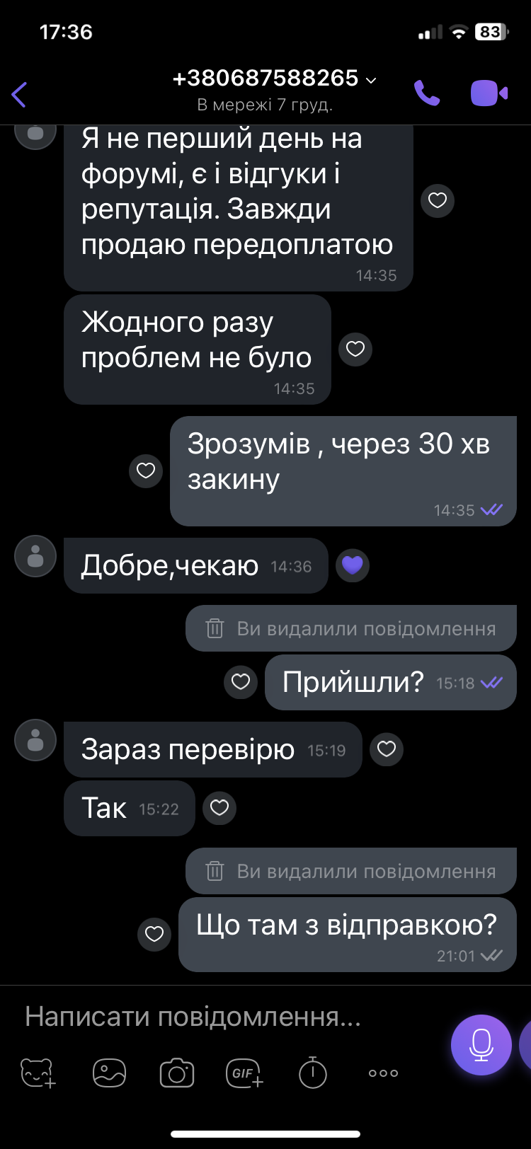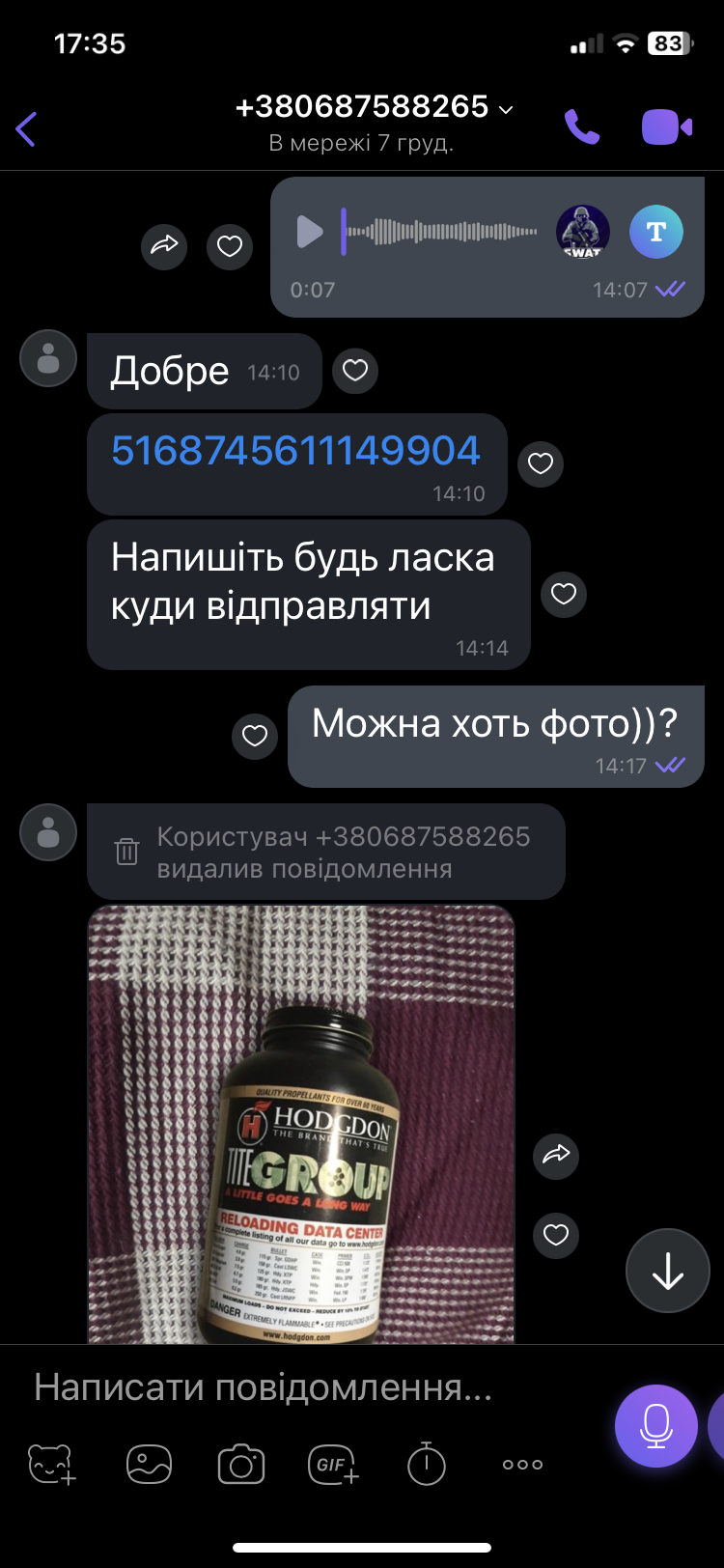 mutabor1974 Ось ця особа кинула мене на 2500грн! Подія сталася 7 грудня: 6 грудня я розмістив на форумі тему куплю порох Hodgdon Titegroup.все було добре поки не написала ця особа,з пропозицією продати мені банку пороха за нормальні гроші і так як я не дуже розумів як це все працює повірив цьому шахраю і скинув гроші, а у відповідь недочикався товару! Фото з перепискою кину нище.