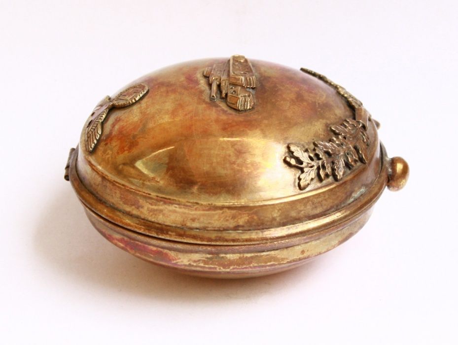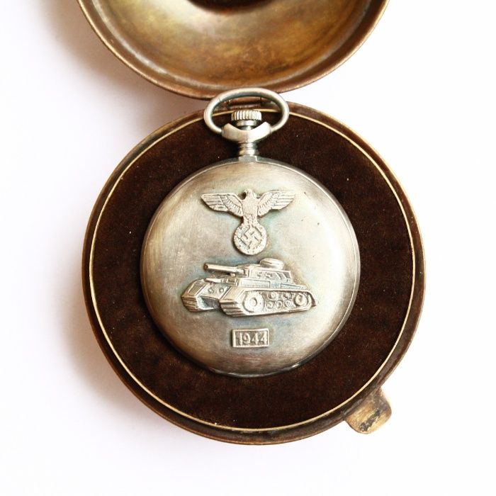 а там внутри - мега девайс....Цитирую продавца: "WW2 немецкие, механические часы в металлической коробке (Танк). Корпус часов посеребренный."