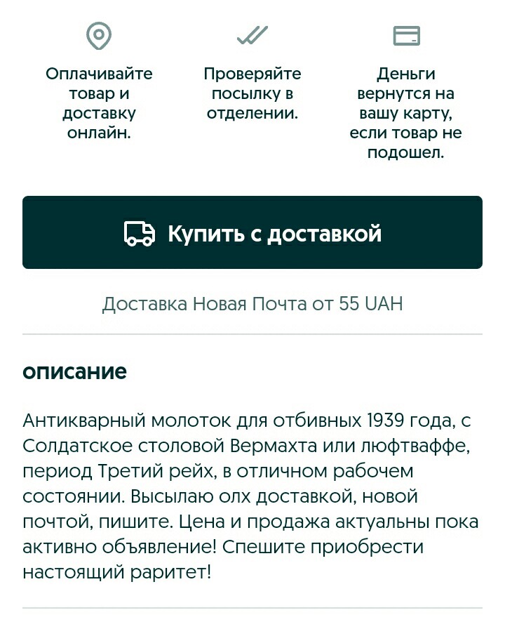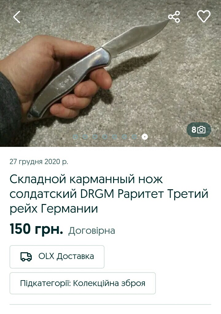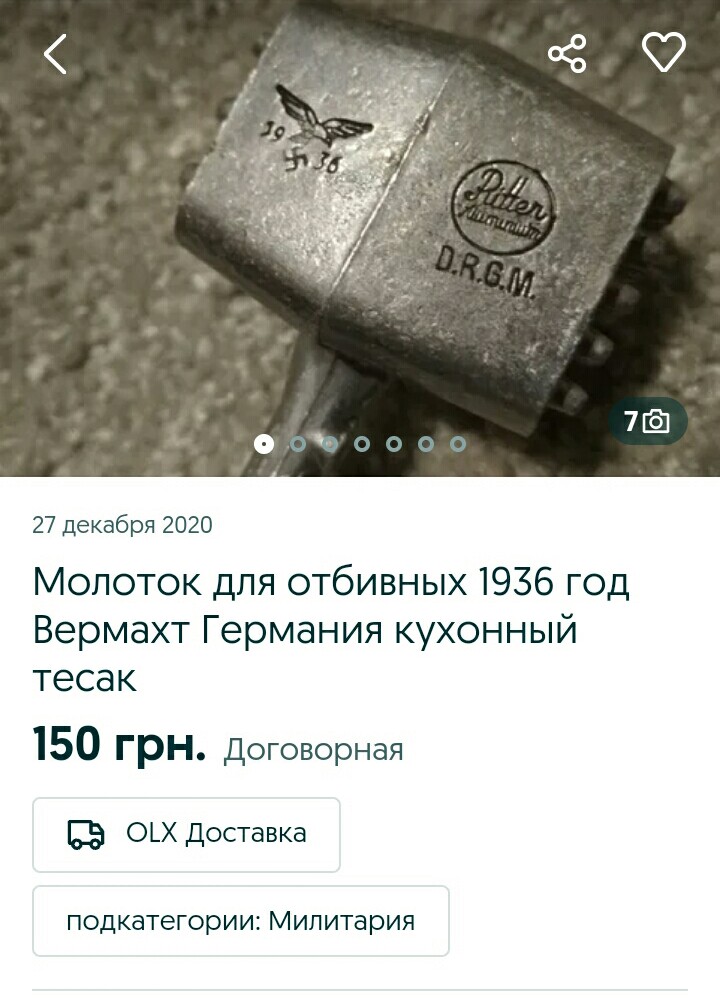 О, с этим же клеймом был не так давно молоток, с отвинчивающейся крышкой на торце рукояти, и отвертками внутри. За 300грн. При чем сам молоток реально старый, довольно интересный, и вряд ли стоил бы дешевле... В чем смысл поганить его какими-то самопальными "клеймами" и прочими "эсэсовскими" картинками, если цена от этого не увеличивается?
