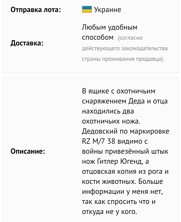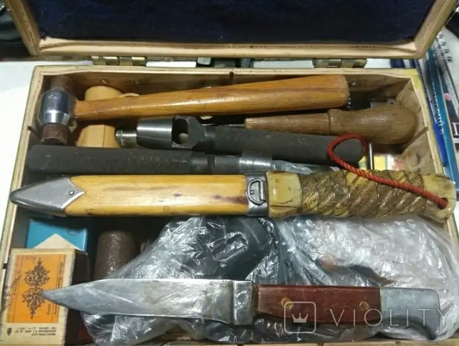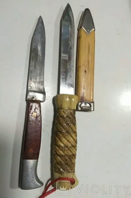 дед и отец хранили охотничье снаряжение в одном ящике....это меганож, он выдавался только ночным подводникам- парашютистам частей СС...нада брать!!!!! Я имею ввиду первый нож на снимке, с коряво сделанным на коленке лезвием и потрясающей ручкой из загадочного коричневого материала.....