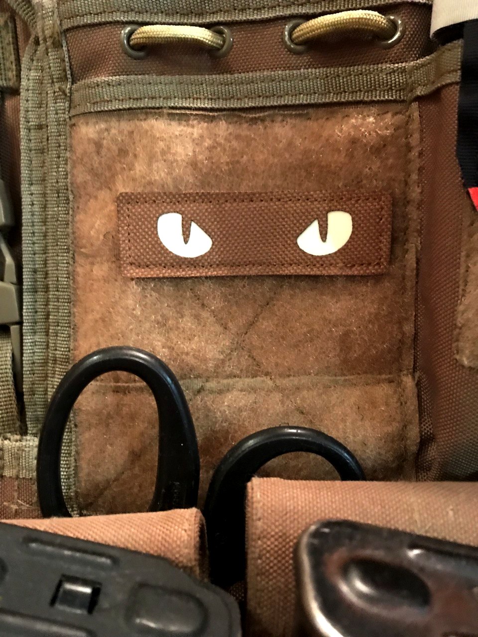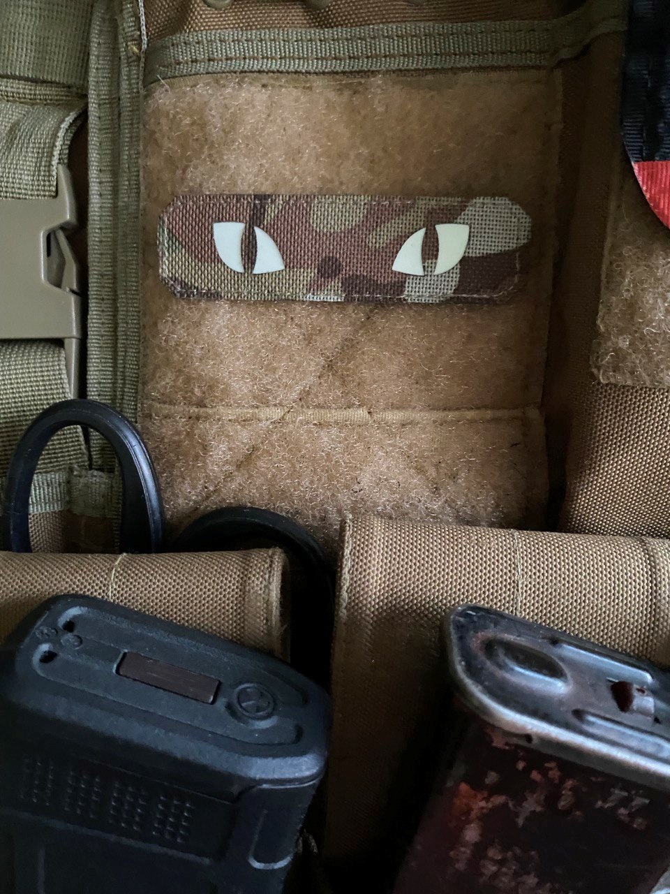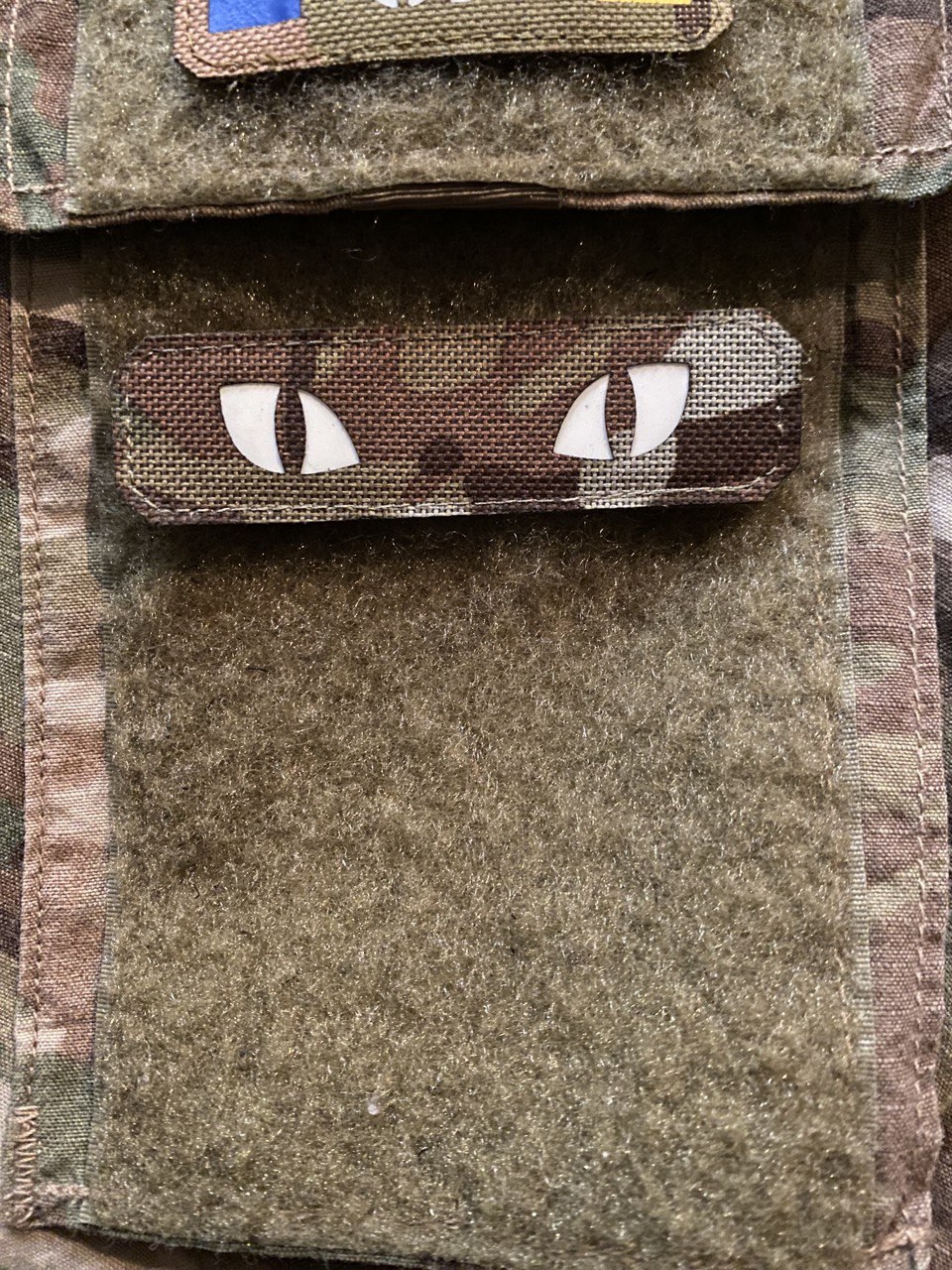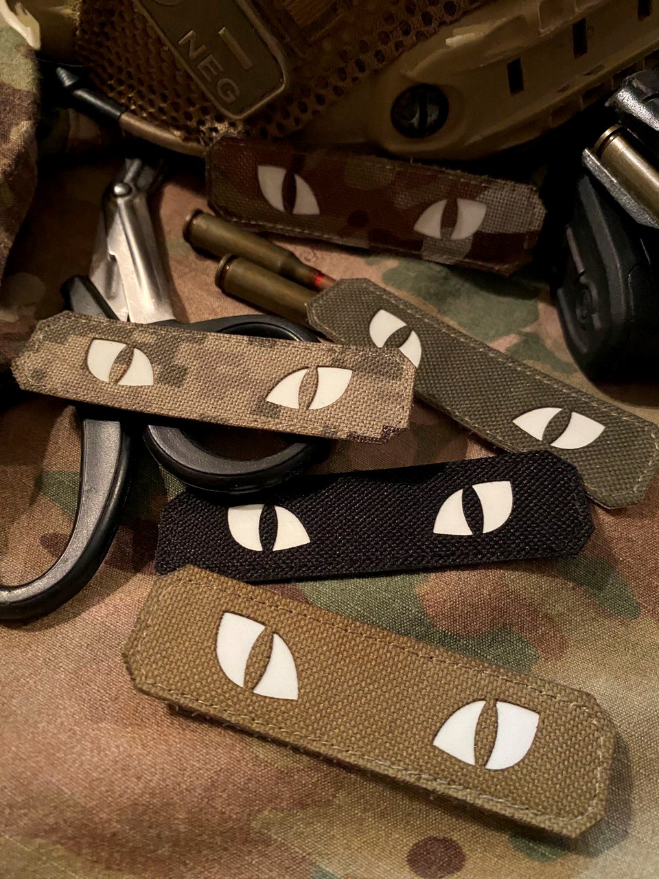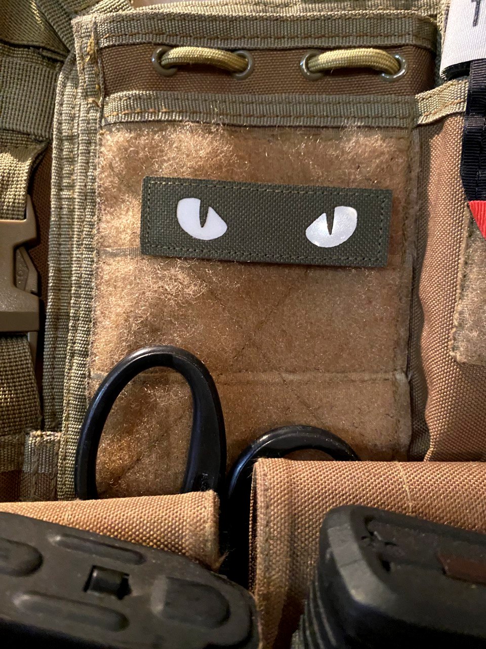 Шеврон «Cat eyes» Шеврон належить до ідентифікаторів типу cat eyes Зображення: світлонакопичувальні вставки (світиться в темряві) Основа: кордура 300D Колір: мм14,мультикам,чорний,олива,койот. Кріплення: липучка велкро Розміри: 25 х 80 мм Спосіб виготовлення: лазеркат Ціна: 110 грн